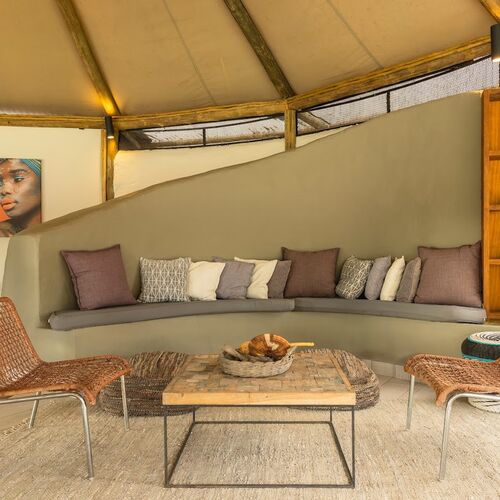 Herudover indeholder campen en lounge, bar, pool, boma område og spiseområde.