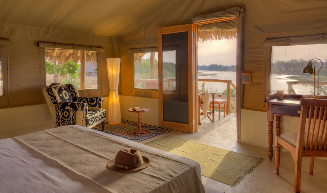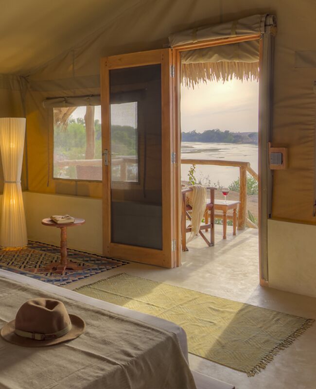Teltværelserne har store, åbne vinduer, der giver en fantastisk udsigt over den omkringliggende savanne og floden, hvilket skaber en tæt forbindelse til naturen. Der er en privat terrasse, hvor man kan slappe af og nyde den storslåede udsigt. De er udstyret med komfortable senge, luksuriøse sengetøj, varme og kolde bruser, samt moderne badeværelsesfaciliteter.