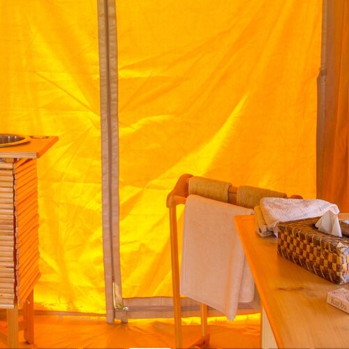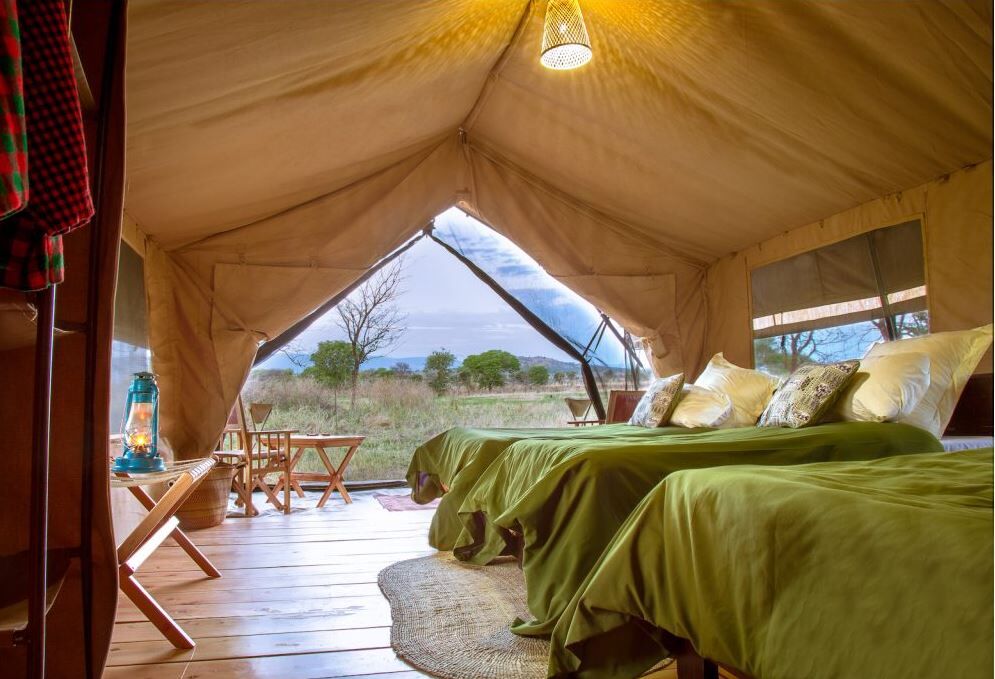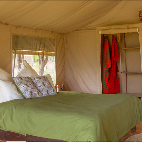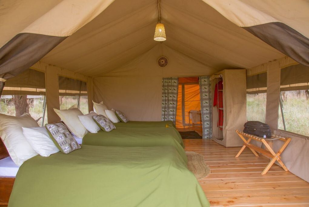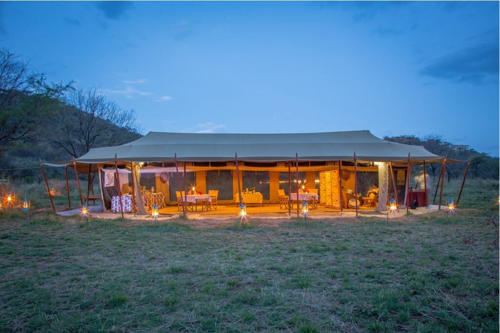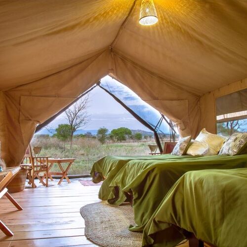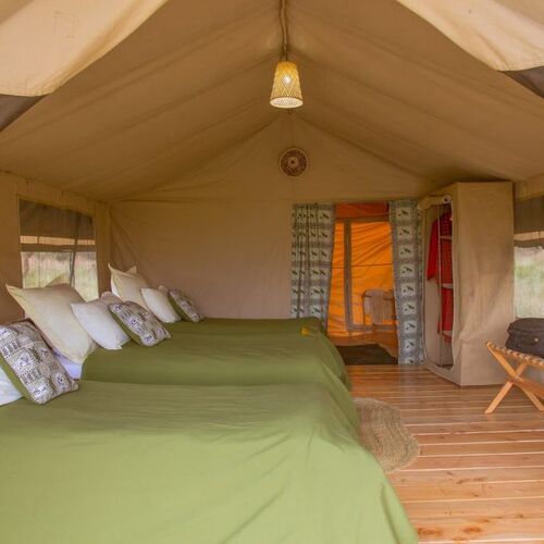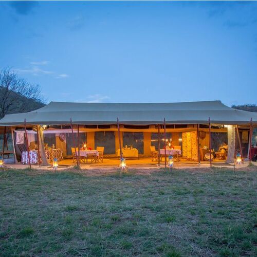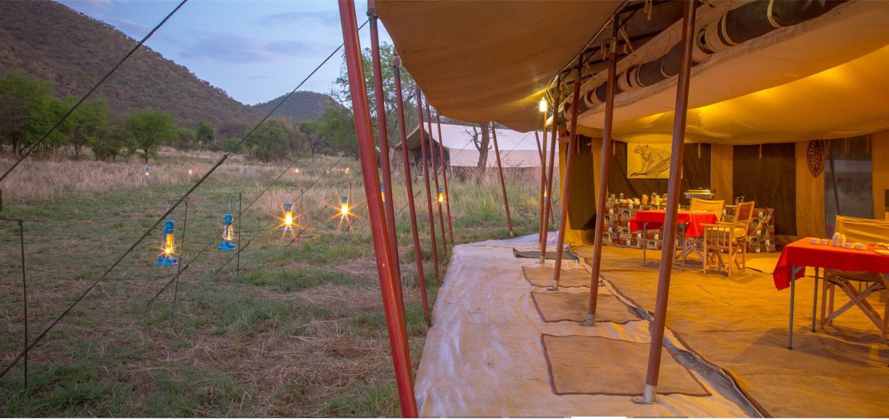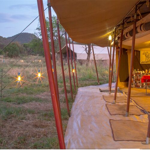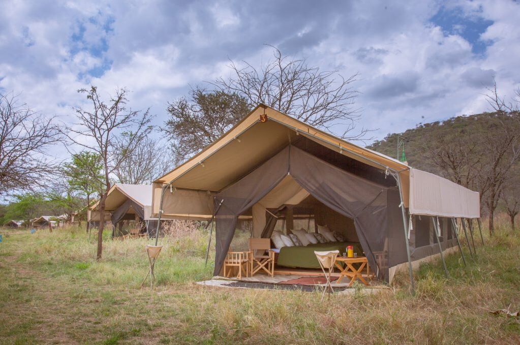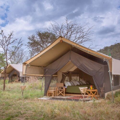 Campen har i alt 10 gæstetelte, der alle har udsigt over Serengetis savanne. Teltene er rummelige og har eget trægulv samt egen veranda med to safaristole og et bord, så I kan slappe af og nyde de landskabet, duftene og lydene omkring jer. Alle teltene har eget bad og toilet. Campen er miljøvenlig og fuldt drevet af solenergi.