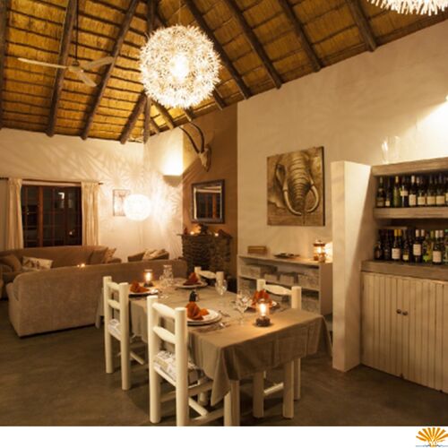 Lodgens hovedhus, Main House, er opført i klassisk afrikansk byggestil. Her finder du en stor spisestue og en opholdsstue, som især benyttes, når det er for koldt til at spise og sidde udendørs.