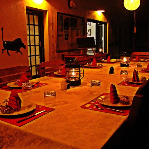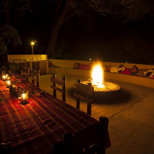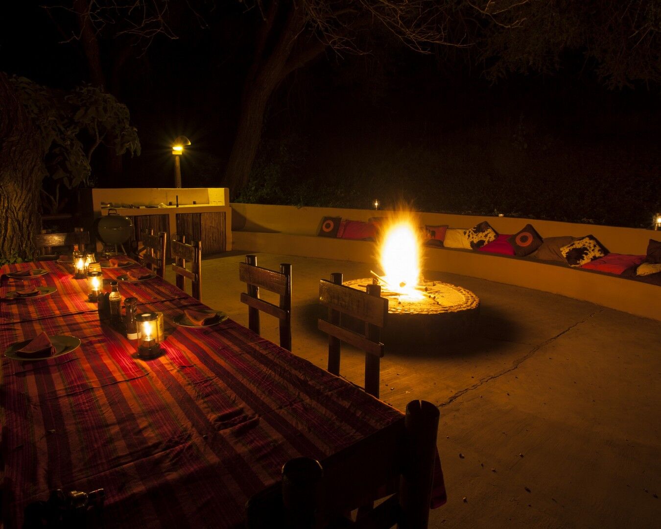 Middagene på lodgen indtages størstedelen af året - når vejret er til det - i bomaen. En boma er en indhegning lavet i smukke naturlige materialer; dens oprindelige anvendelse i Afrika har været at beskytte husholdningens husdyr mod de vilde dyr, men i vore dage anvendes betegnelsen også om et udendørs spisested med grill og åbent ildsted.