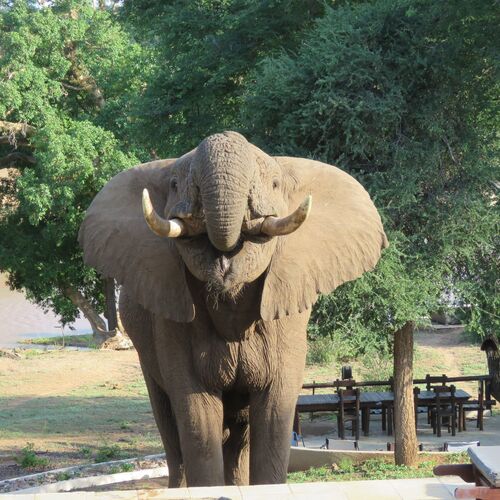 Hovedhusets mest populære sted er den kæmpestore terrasse, som byder på en helt unik udsigt over Olifants River og Great Kruger National Park. Terrassen er møbleret med komfortable, bløde lænestole og et stort åbent ildsted. Her indtager gæsterne en drink inden tjeneren kommer ind for at annoncere, at ”Dinner is ready!”.