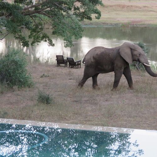 Poolen ligger direkte ud til Olifants River med fri udsigt til de dyr, som opholder sig i floden eller som kommer ned til den for at drikke eller svale sig i det kolde vand. I poolområdet er der solsenge og parasoller samt et overdækket område, hvor man i skyggen kan nyde en god bog eller betragte dyrelivet.