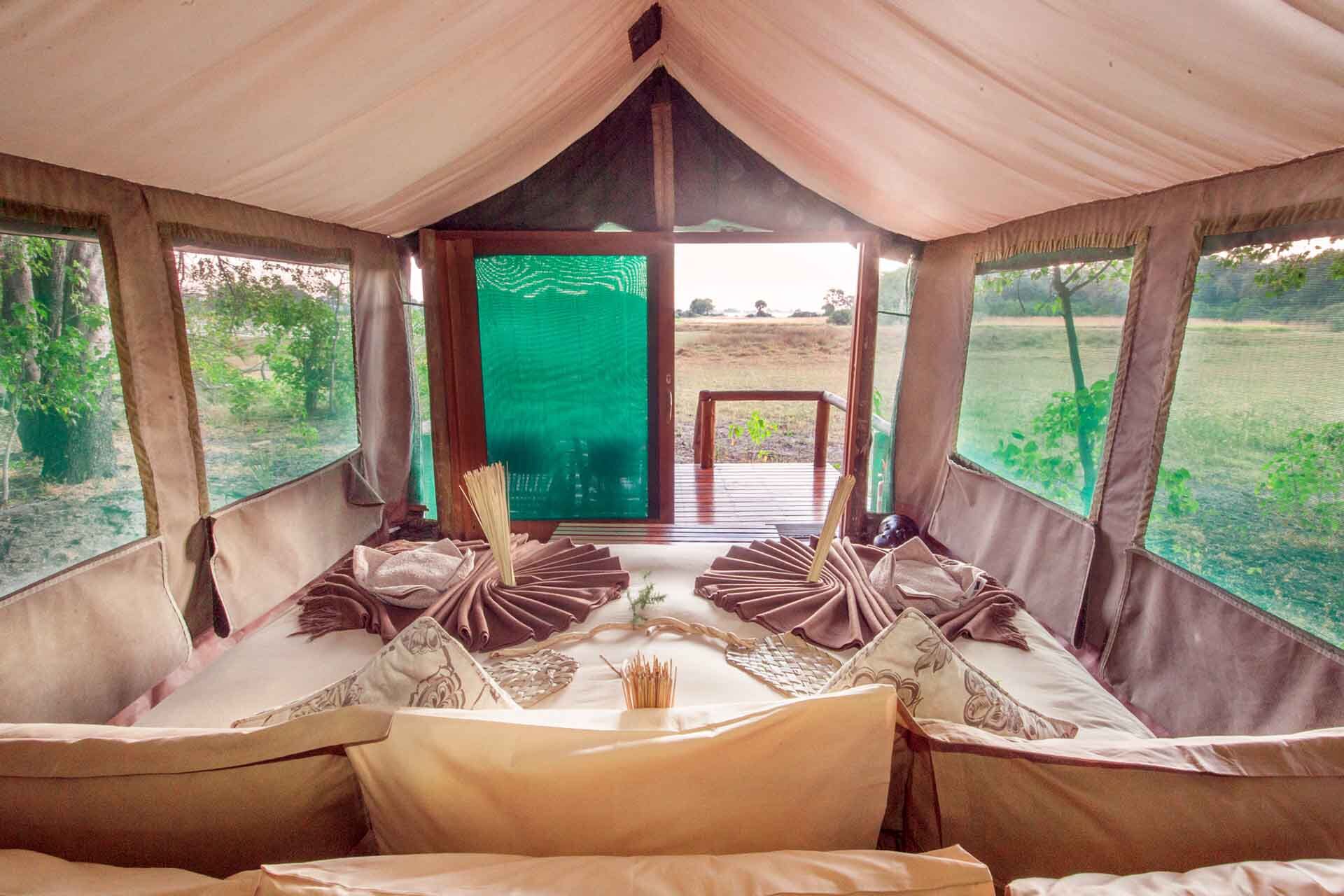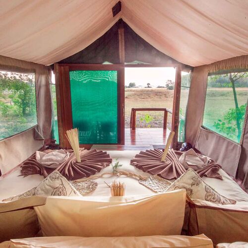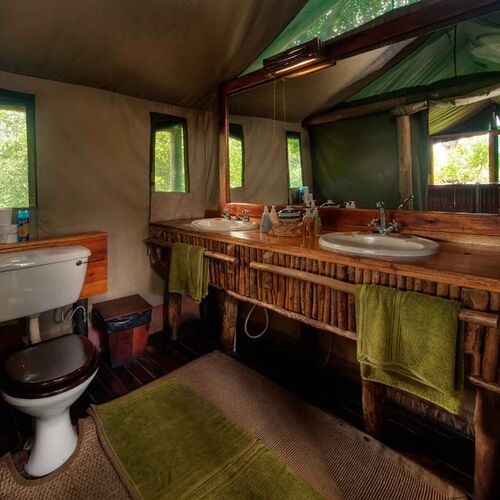 Kwara main camp features 8 luxurious guest tents, furnished in classic safari style, and offers accommodation for a maximum of 16 guests. All tents have been built on raised teak terraces. They all are equipped with a private bathroom, with a toilet and private outdoors shower.
