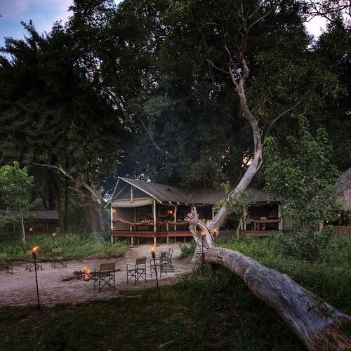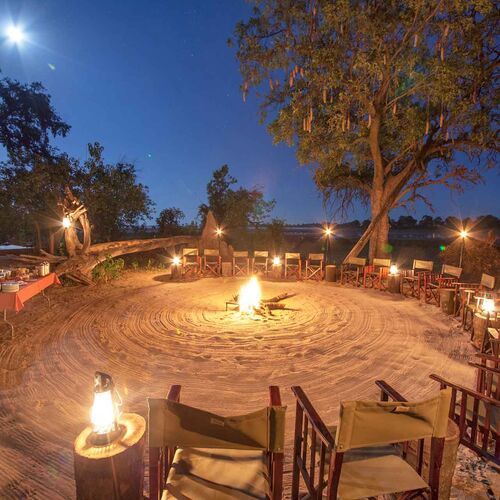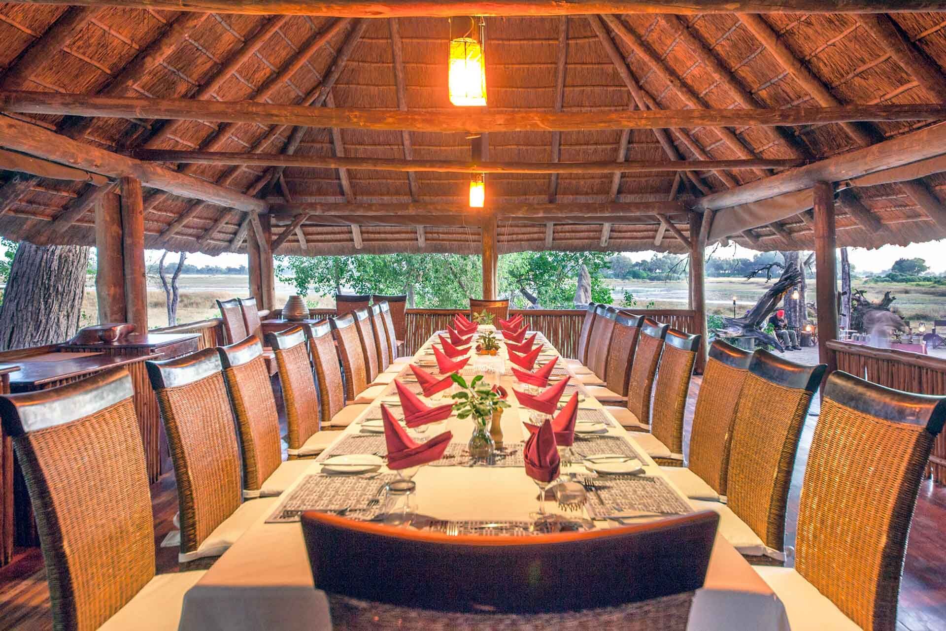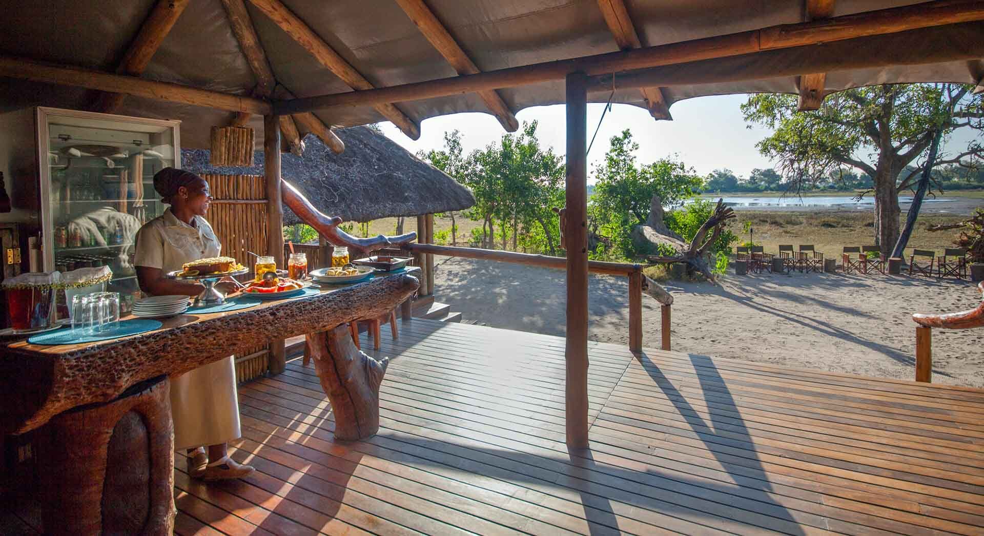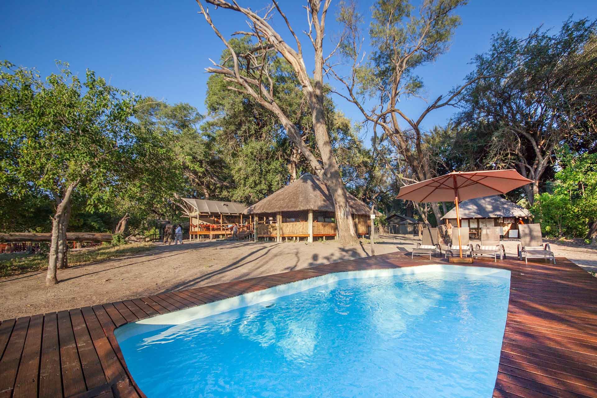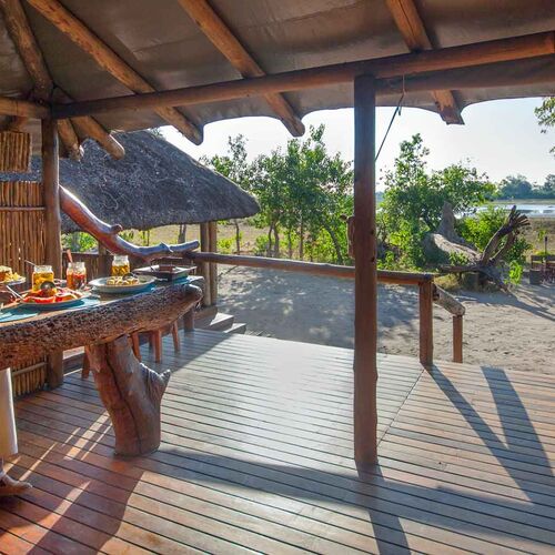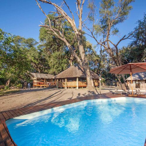 Your stay here includes 3 meals a day and all drinks. Meals are served in the intimate thatched lounge, from where you have a good view of the lagoon. The camp also has a swimming pool and a small shop.
