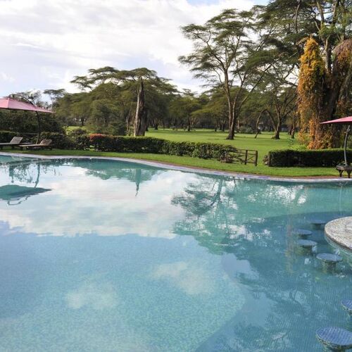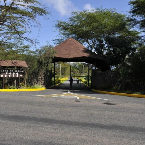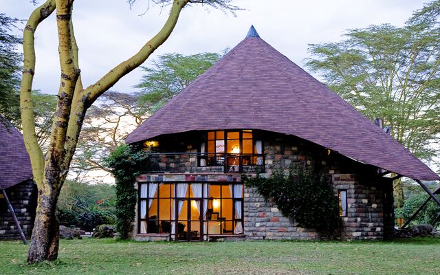Lake Naivasha Sopa Resort in Kenya has been built in an area of 180 acres of grasslands and acacia trees. The resort lies at an altitude of 1900 m on the southern shore of the freshwater Lake Naivasha in the Great Rift Valley. The lush surroundings often attract giraffe and waterbuck, as well as both vervet- and colobus monkeys. At night hippos form the lake often visit to graze.
