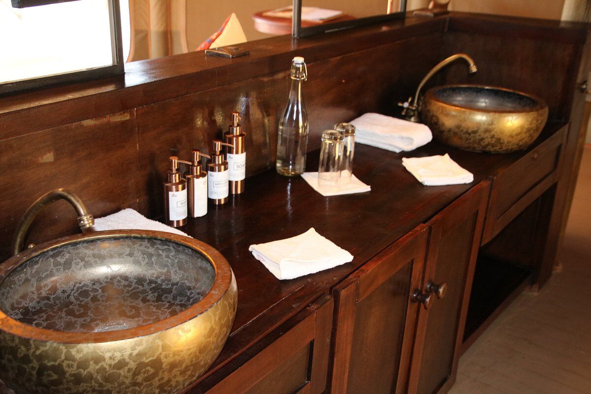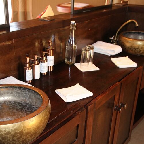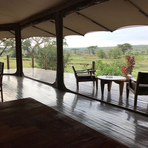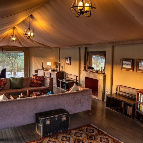 Leopard Hill har et rummeligt loungetelt ved siden af spisepladsen. Loungen huser en bar og et bibliotek med interessante safaribøger.