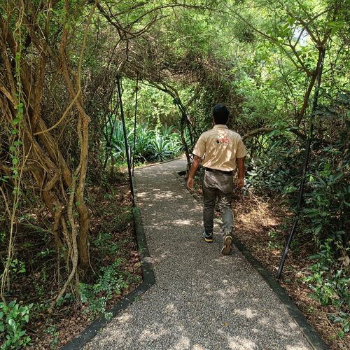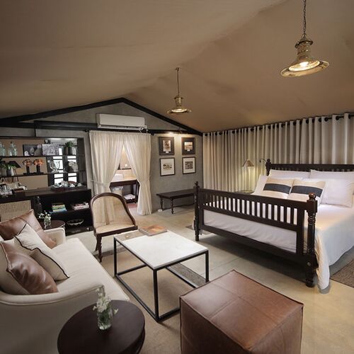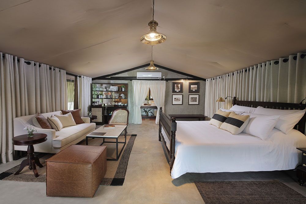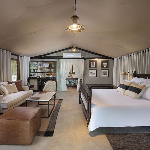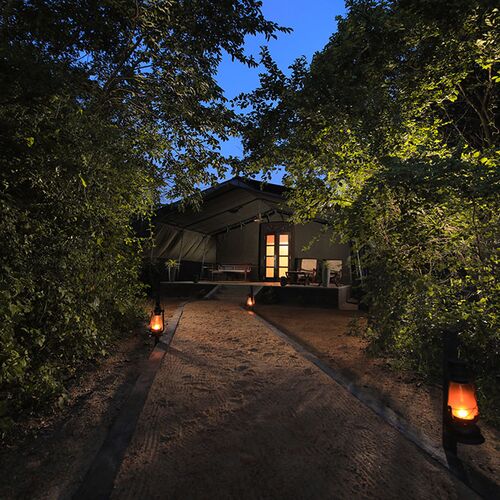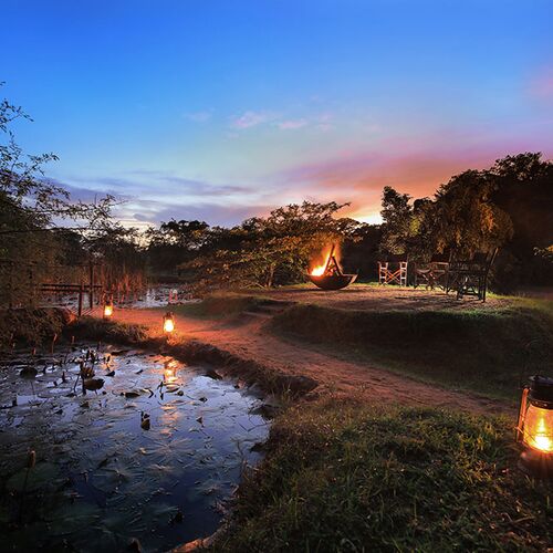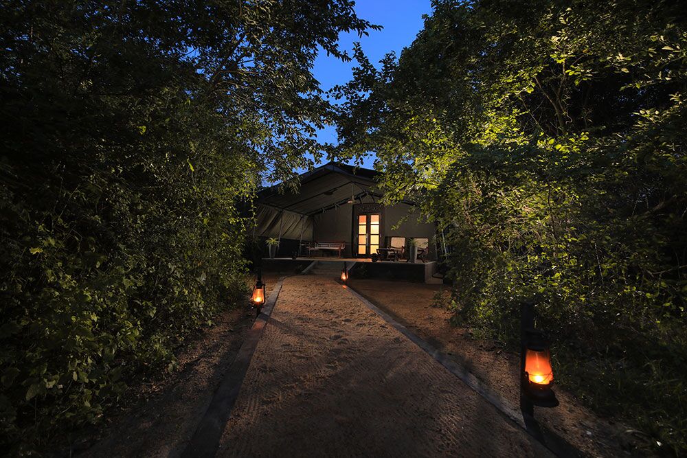 Ved overnatning her får man en rigtig jungleoplevelse. Teltene ligger blandt træer og buske på området, og der bruges ofte lanterner og fakler til at skabe stemning, og til at lyse op efter mørkets frembrud. Den første aften følger personalet dig til teltet efter aftensmaden, idet campen er åben og fra tid til anden får besøg af dyrene fra nationalparken.