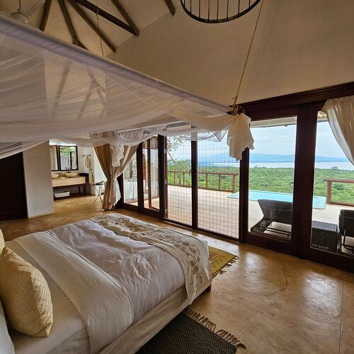 Udsigt: Mange værelser har store vinduer eller private terrasser, der giver fantastisk udsigt over Lake Manyara og det omkringliggende landskab.