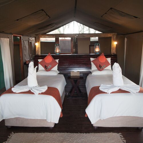 Gæsterne bor i 16 nye stilfulde safaritelte, hver med privat træterrasse og magisk udsigt over Boro River til Chief's Island. Alle telte er store og luftige med eget badeværelse bestående af brusebad og toilet.