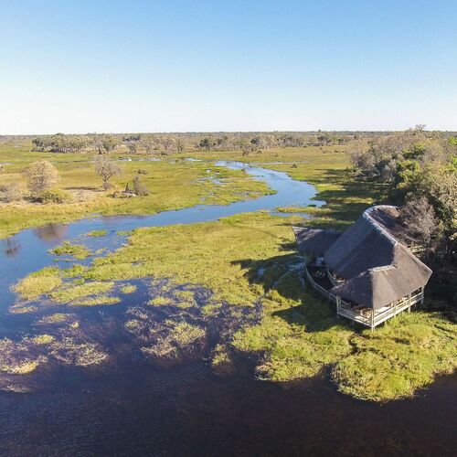 Campen ligger tæt på sydspidsen af en lille træklædt ø kaldet Chief's Island. Med fly tager rejsen hertil 90 minutter fra Kasane og 20 minutter fra Maun. Når man flyver over deltaet, kan man se mosaikken af vandveje og de skiftende farver,