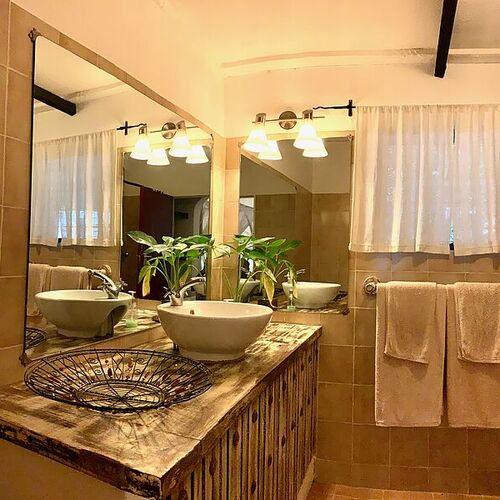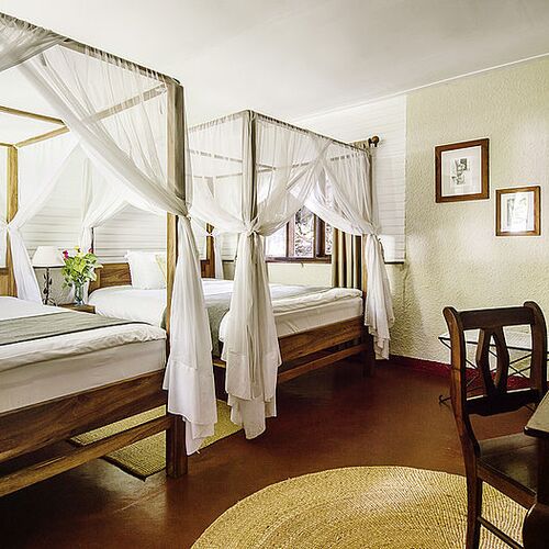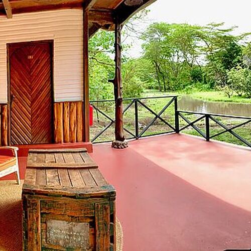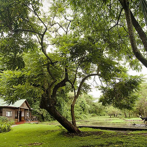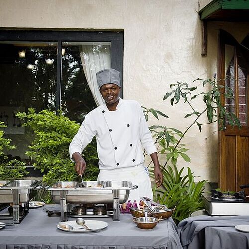 Lodgens hovedbygning består af en reception, lounge og bar. Loungen med sine enorme panoramavinduer og komfortable møbler sørger for et afslapende miljø. Baren har et bredt udvalg af spiritus, øl og mineraler, som suppleres af en nøje udvalgt samling af vine. Foran hovedbygningen er en terrasse i skyggen af enorme gamle mangotræer, som har en storslået udsigt over omhyggeligt plejede haver udenfor. På lodgens grund findes en udendørs spiseplads og en swimmingpool, hvor man kan nyde et par solstråler. Haven med lejrbål giver mulighed for at spise under den afrikanske stjerneoplyste himmel, mens der lyttes til de eksotiske nattelyde.