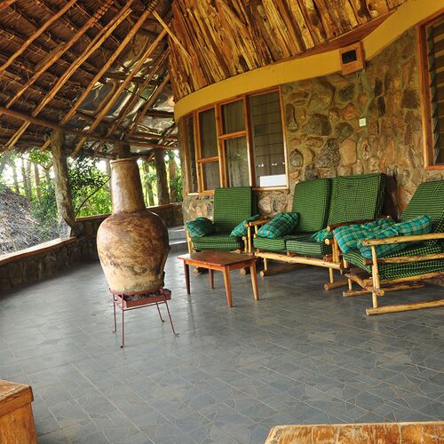 Den ikoniske stengrotte restaurant på Naiberi River Campsite & Resort er næsten en attraktion i sig selv. Her tilbydes der et stort udvalg af drikkevarer og en spændende menu, som kan nydes i den fantastiske atmosfære i grotten.