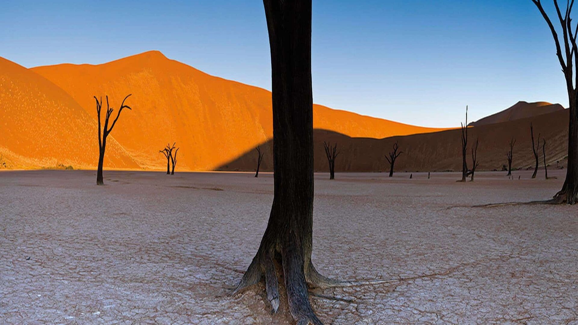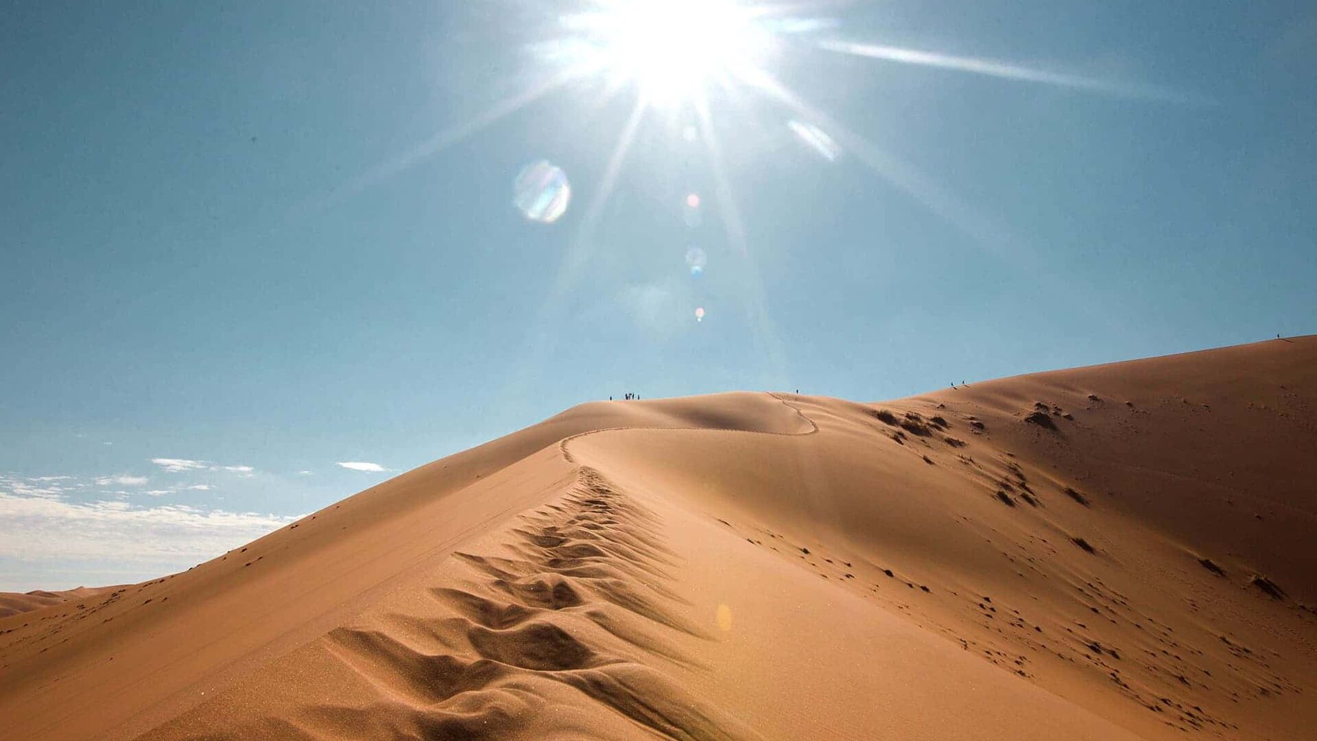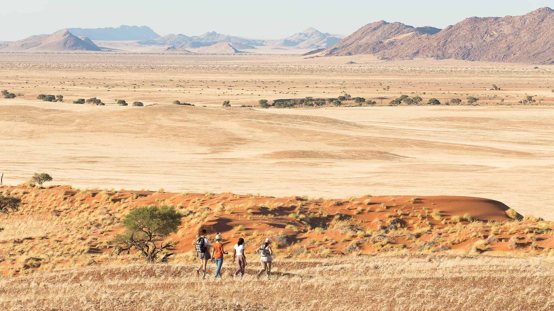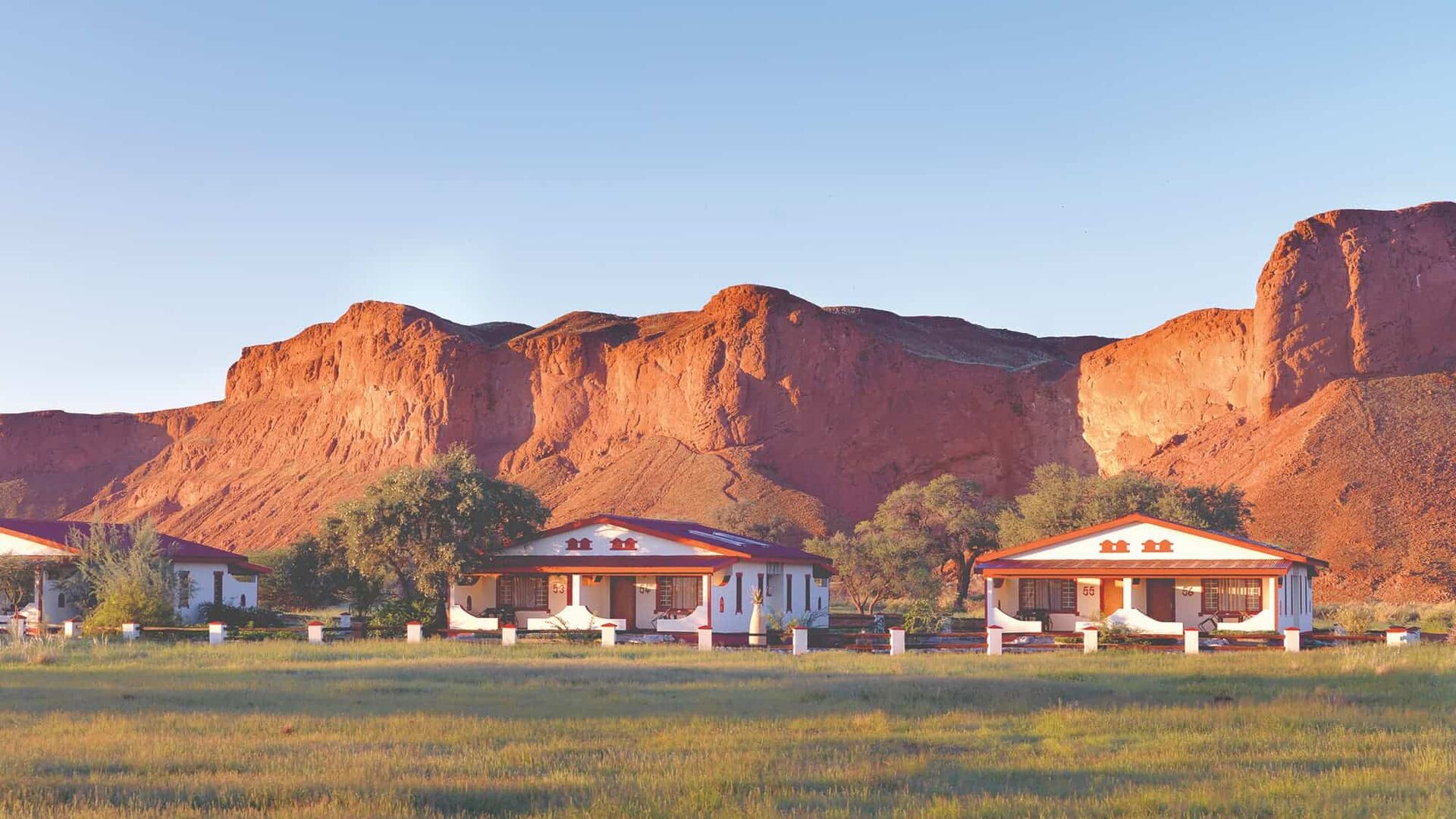 Ved foden af gamle, forstenede klitter, er Namib Dessert Lodge en passende ledsager til den imponerende røde sandørken. Oplev pladsen for undren, når man drager ud på en køretur ved solnedgang eller tidlig morgen gennem de røde klitter, der udforsker dette betagende sandmesterværk. Fra kanten af klitterne, hvor sandet begynder at gløde i en dyb, rig sienna farve, åbenbares et syn af absolut skønhed i gyldne toner, der strækker sig fra de bløde klitter omkring til den fjerne, grønne strimmel af flodtræer og de lilla-blå bjerge.