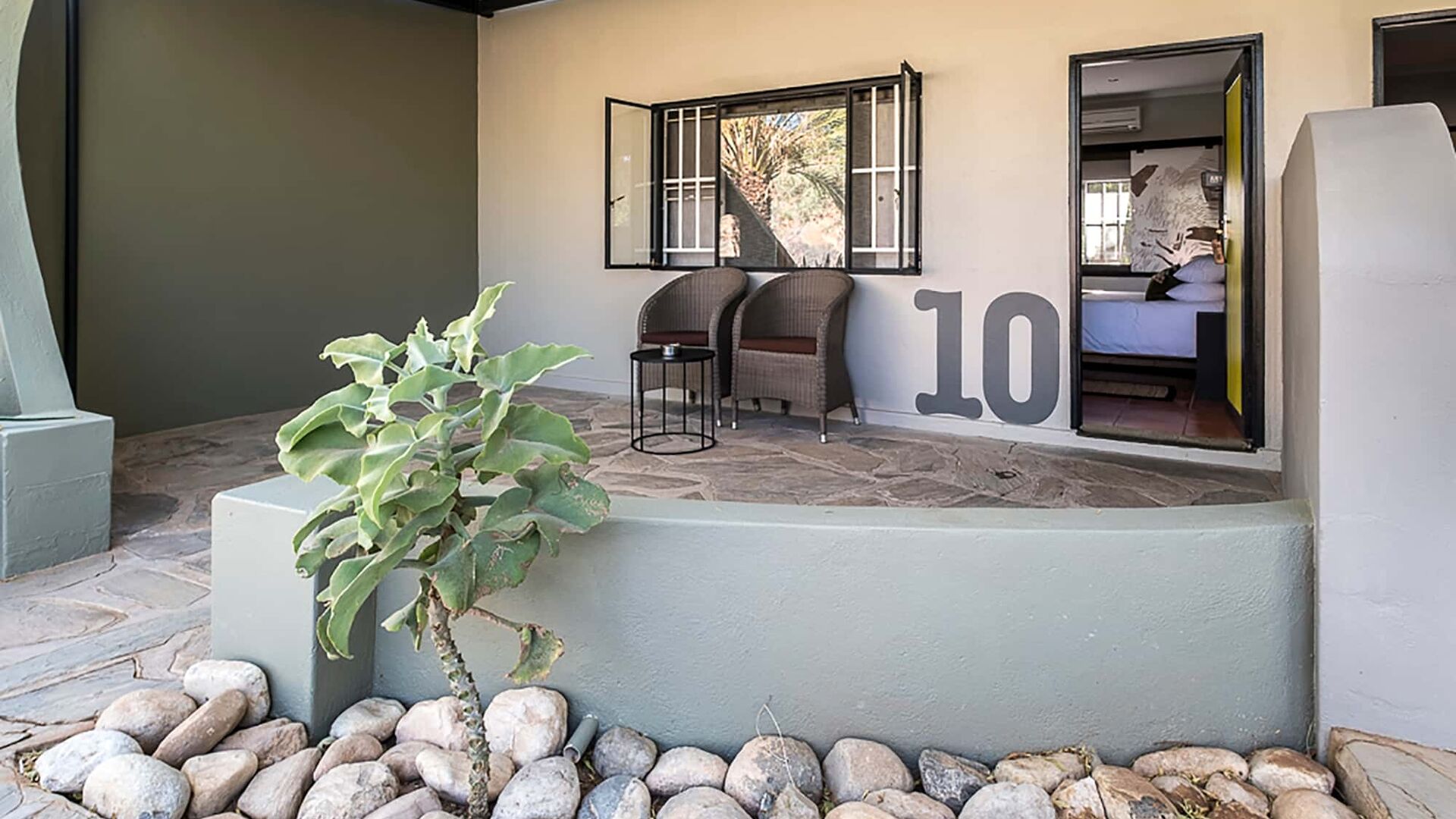 Namibørkenen Lodge byder på 66 værelser i forskellige konfigurationer for at imødekomme forskellige behov. Alle værelser er udstyret med moderne bekvemmeligheder som aircondition/varme, pengeskab, veranda, eget badeværelse med brusebad og grundlæggende toiletartikler, te/kaffe faciliteter og hårtørrer. Der er også mulighed for gratis WIFI, og ejendommen sikrer sine gæster med 24-timers sikkerhed.