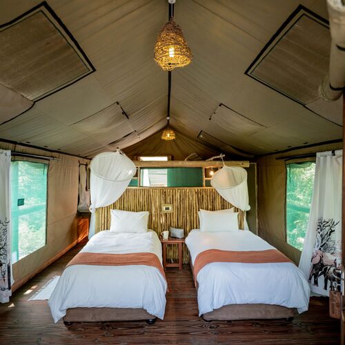 Nata Lodge ligger på resterne af Afrikas største indre hav, på kanten af Makgadikgadi Salt Pans. Nata Lodge tilbyder tre overnatningsmuligheder: hytter, familiehytter og safaritelte. Otte hytter med eget bad er bygget på en platform med udsigt over Didibakwe-floden og i skyggen af palmer. To af disse hytter har udendørs brusere. Alle hytterne har loftsventilatorer og et pengeskab til at gemme dine værdigenstande.