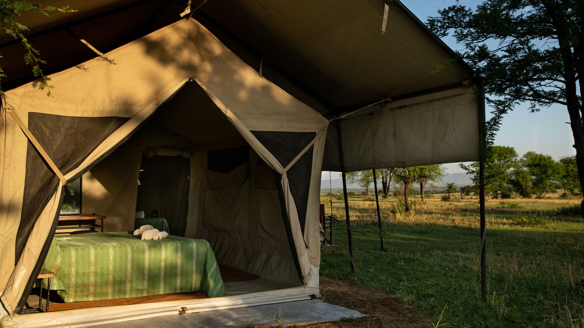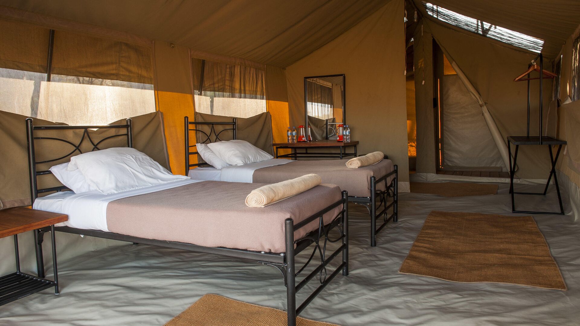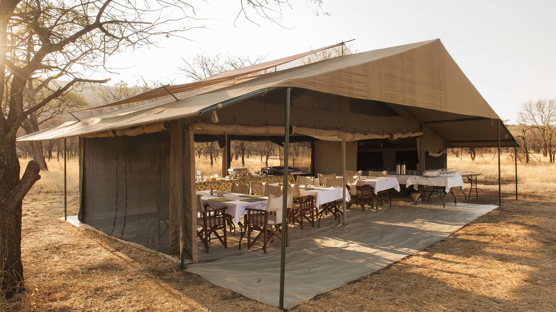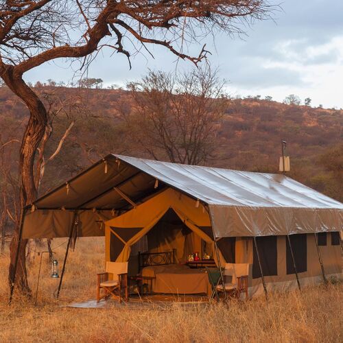 Lejren består af komfortable, rummelige safaritelte med privat badeværelse, herunder spandbruser og toilet. Teltene er enkelt og funktionelt indrettet med senge, natborde og bløde tæpper, og de er designet til at blende ind med naturen omkring. Hver enhed har en lille terrasse foran, hvor gæster kan sidde og nyde solopgangen eller høre dyrene i det fjerne om natten.