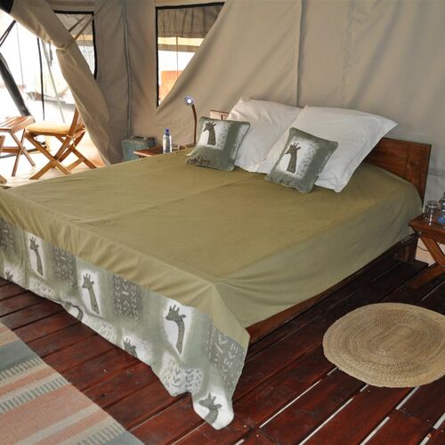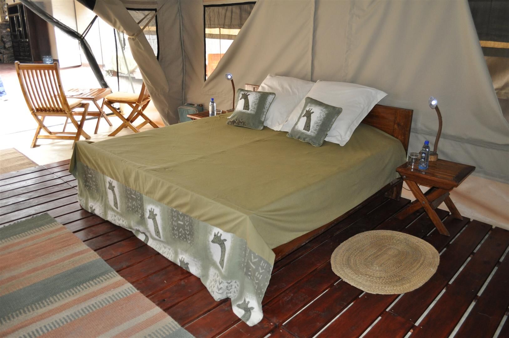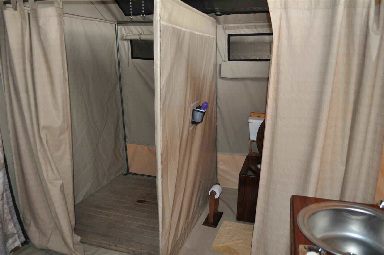 De luksuriøse telte er høje, så man kan både stå og gå inde i dem. Der er senge af træ, madrasser, dyner, tæpper, puder og sengeborde. Der er toilet-og badfaciliteter bagerst i teltet og afskærmet af kanvas teltdug. Udenfor teltet er der en veranda med to safaristole og bord, så man kan sidde udenfor sit telt og nyde naturen, lydene og slappe af midt i det afrikanske safarieventyr.