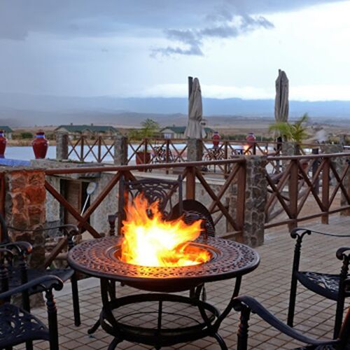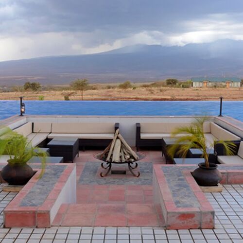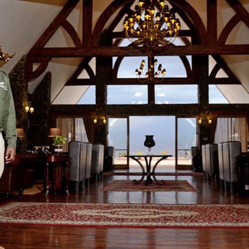 Adgangen til lodgen sker over en dam, og det første indtryk man får her er den store centrale hall med træbænke og udsigt til pejsen, infinity poolen og til Mount Oldeani, som er en del af det verdens berømte Ngorongoro krater, der er beliggende kun 12 km. væk fra lodgen.
