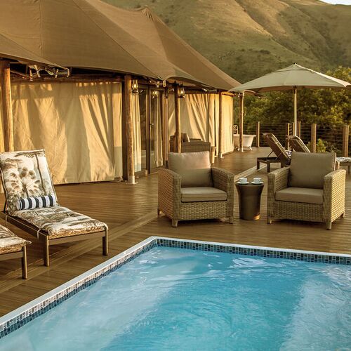 Campen indeholder 14 luksustelte, der er indrettet i luksuriøs ”out of Africa” stil. Teltene er placeret, så de falder ind i det naturlige landskab, og er forbundet af stier gennem bushen. Nyd livet og din safari i dette helt unikke område langs Komati River. Nyd blot opholdet i de fantastiske omgivelser, slap af og læs en god bog på solterrassen eller tilmeld dig game drives og/eller en af de andre spændende aktiviteter, som tilbydes.