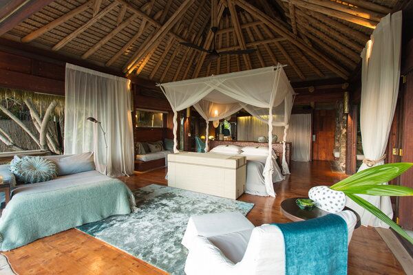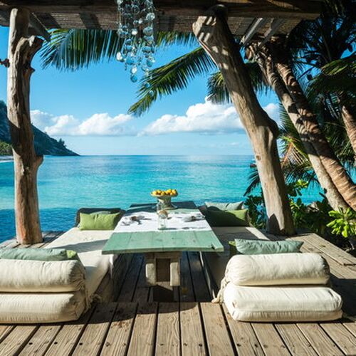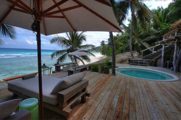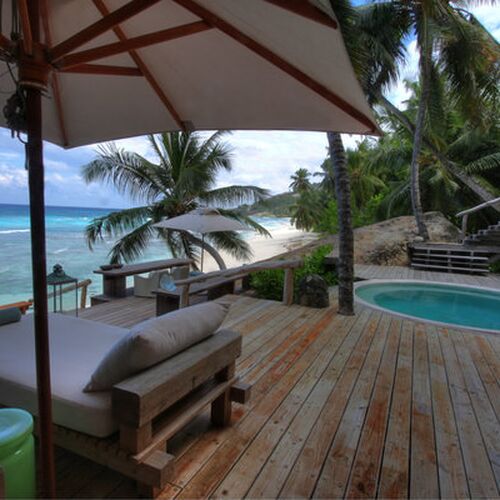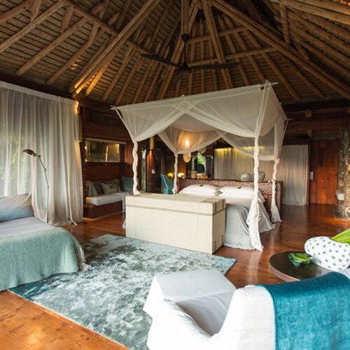 This island paradise offers a lodge with ten Presidential guest villas, situated along the island’s East Beach, offering direct access to beach and the ocean. Each villa is hidden away and built in harmony with the natural surroundings, offering an undisturbed location with an ocean view. The 450m2 open plan villa, is built on several levels, the handmade interiors feature organic shapes and a sophisticated touch of design. All villas were built here by local, African craftsmen, from local materials. Each villa also has a 17,000 liter pool and a surrounding 200m2 sun deck with direct access to the beach. The unique architecture and furnishings of the villas is the very definition of “barefoot luxury”!
