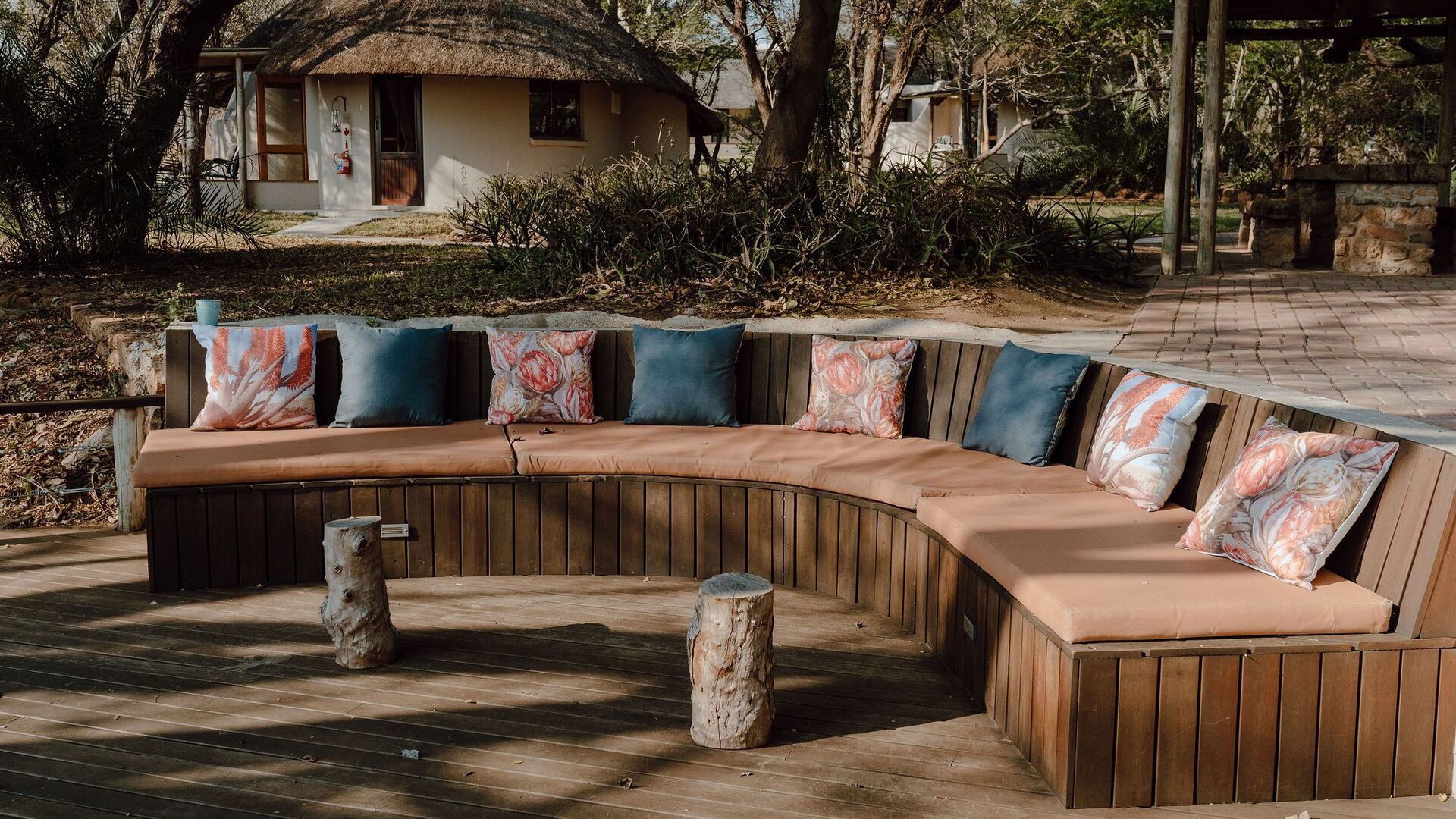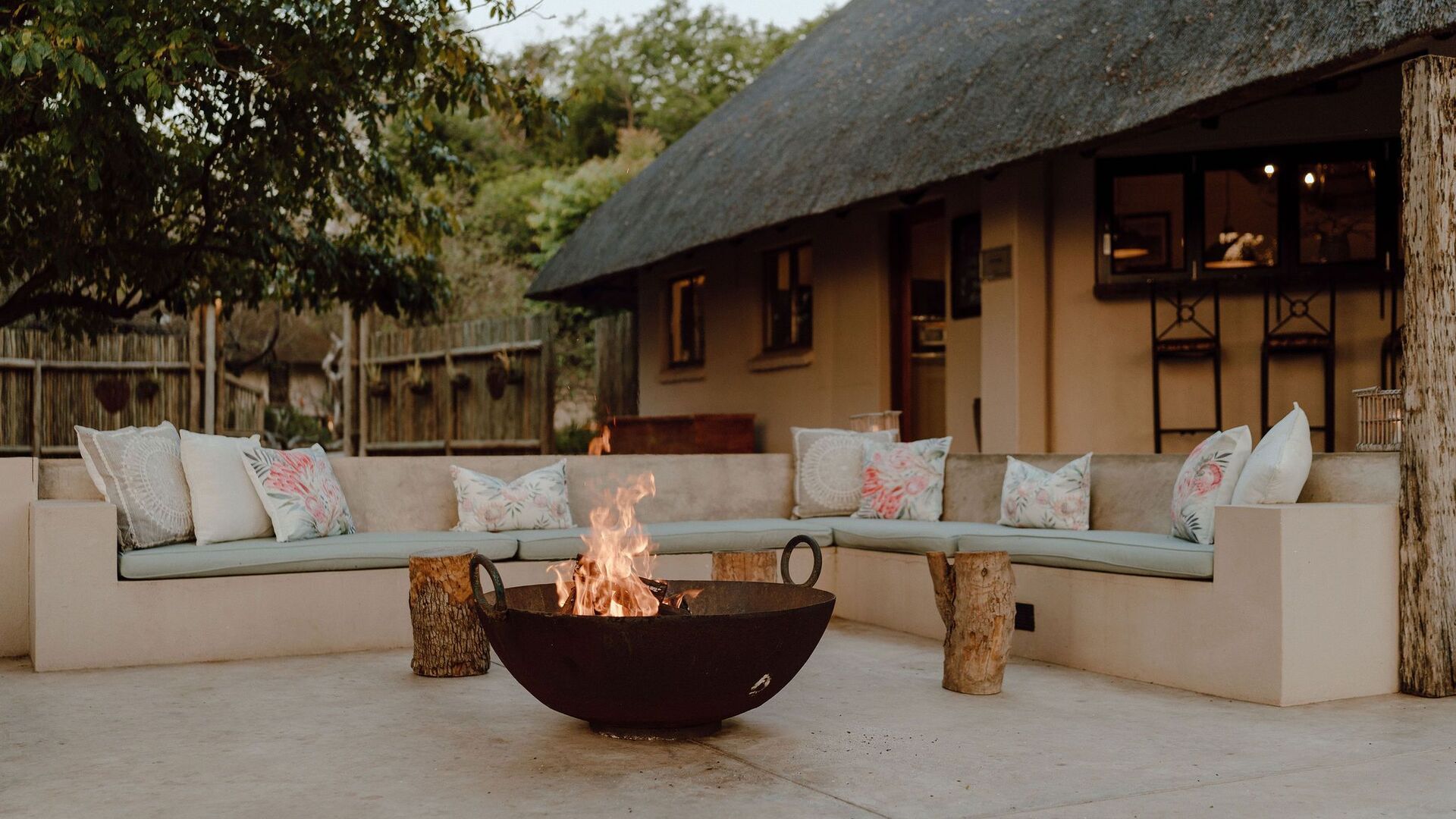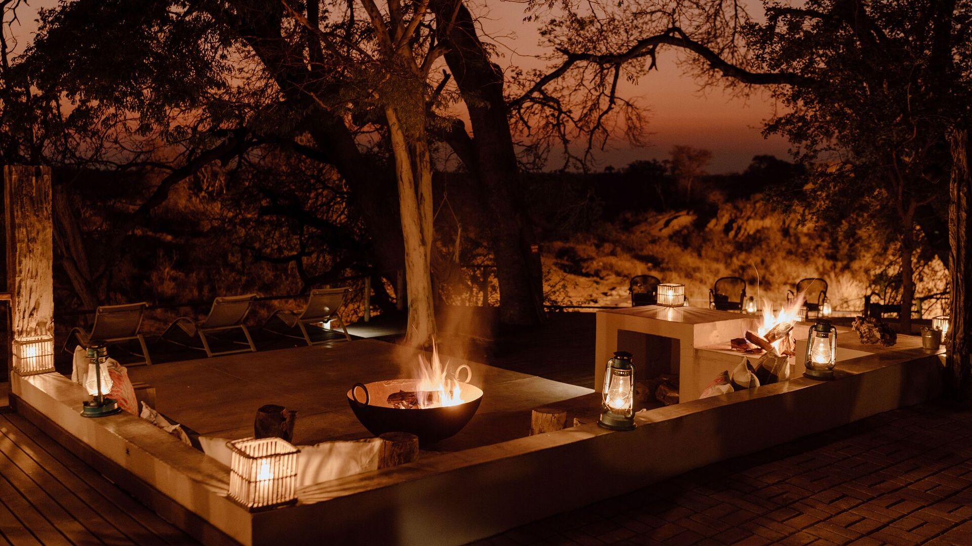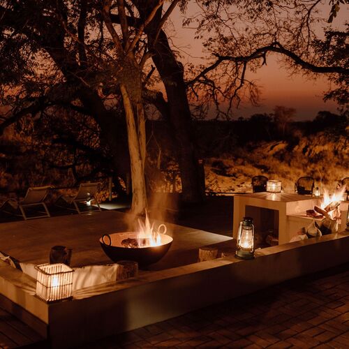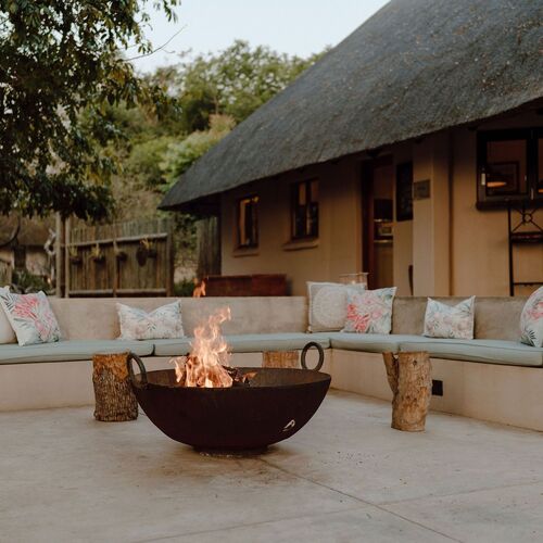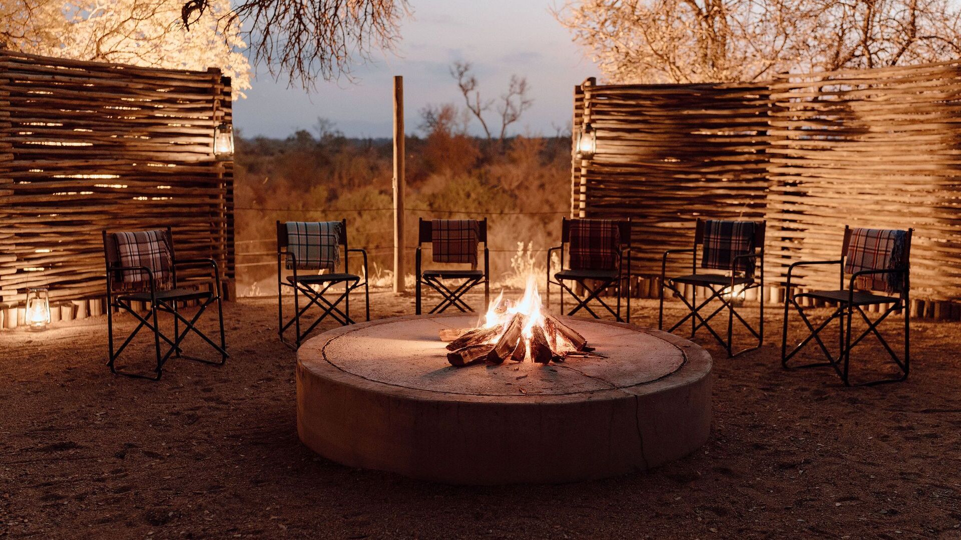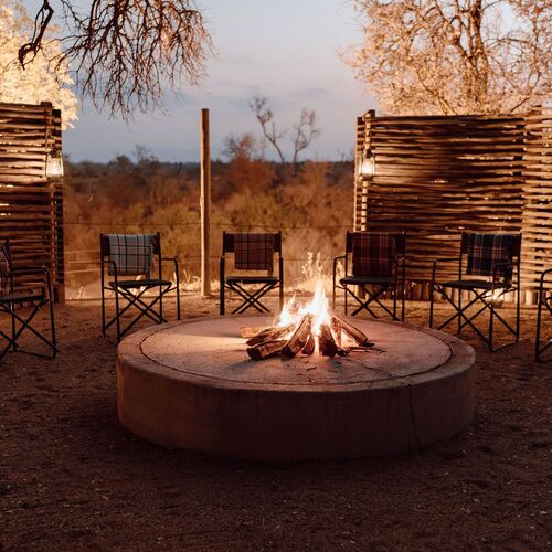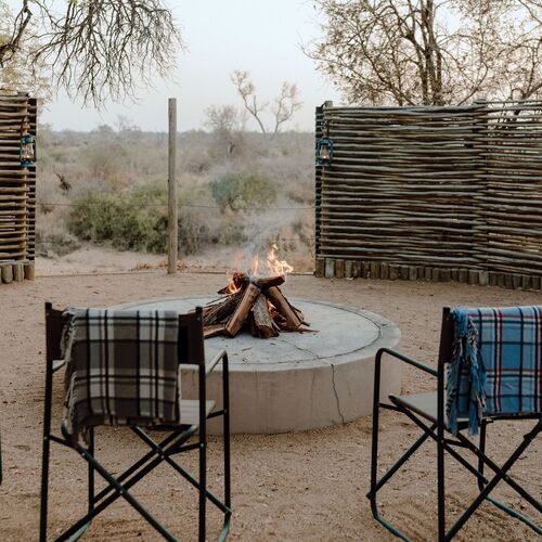 • Boma-område med bålsted, stole og udsigt over buskområdet