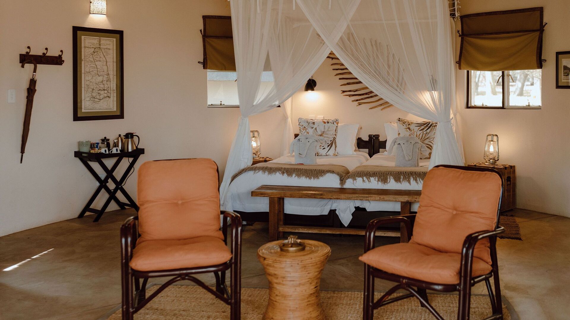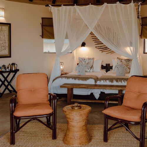 Lodgen har 5 veludstyrede hytter, indrettet med sandfarvede interiører og jordnære toner designet til at harmonisere med Balule Bushveld. Forvent egyptisk bomuldslinned, lette træmøbler og udsmykkede badeværelser, hvoraf fire har dybe luksuriøse badekar. Mens hvert værelse har et strejf af unikke detaljer, har de alle både indendørs og udendørs brusere samt udsigt til enten bushveld, pool eller flod.