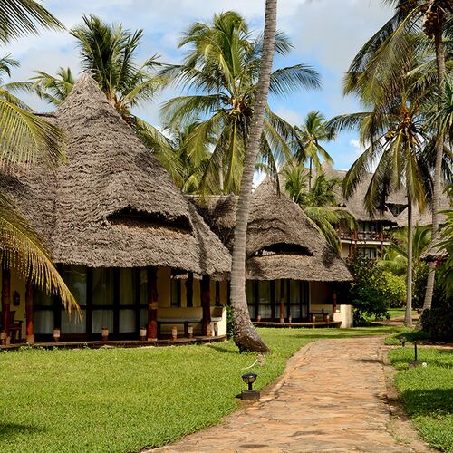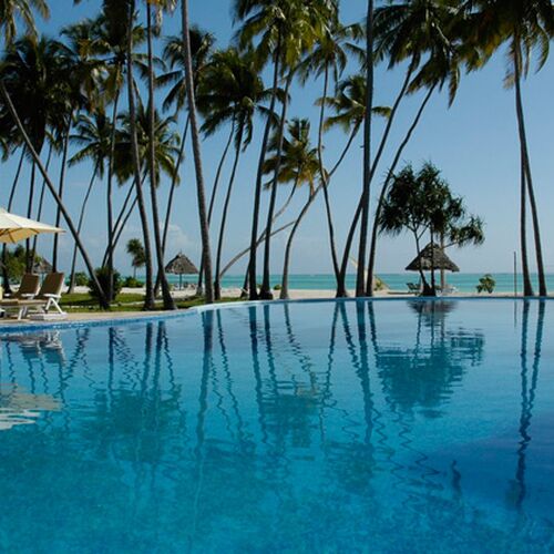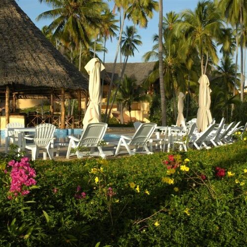 The Ocean Paradise Hotel is an African style beach hotel on one of Zanzibar’s most beautiful stretches of coastline, right next to the Indian Ocean and even having Zanzibar’s biggest swimming pool. The hotel lies on Zanzibar’s beautiful north east coast and is set in 6.5 ha tropical gardens and parkland, with direct access to the property’s sandy beach.