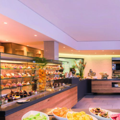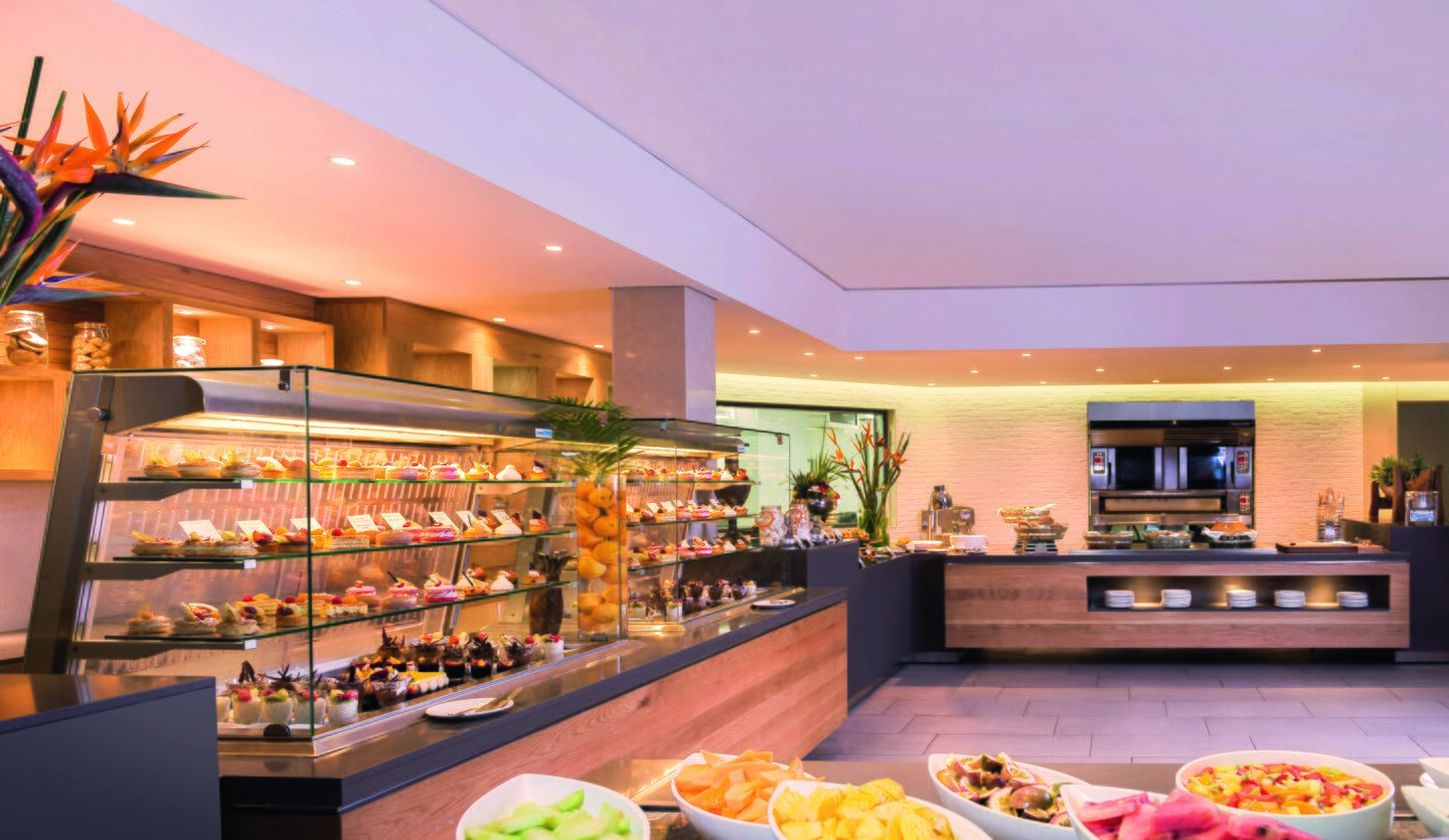Hotellet har fire luksuriøse gourmetrestauranter med hver deres skønne stemning og placering. Der er buffeter i asiatisk, italiensk og fransk stil og a la carte i middelhavs, seafood og autentisk Mauritisk stil. Nogle placeret i haven, nogen på stranden og én som en del af hovedbygningen. Skulle man alligevel ikke tænke at dette var nok, har man også adgang på søsterhotellet blot 2 km væk som også har fire forskellige restauranter.
