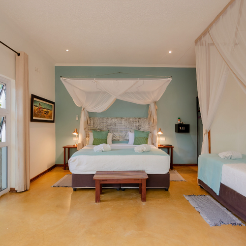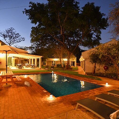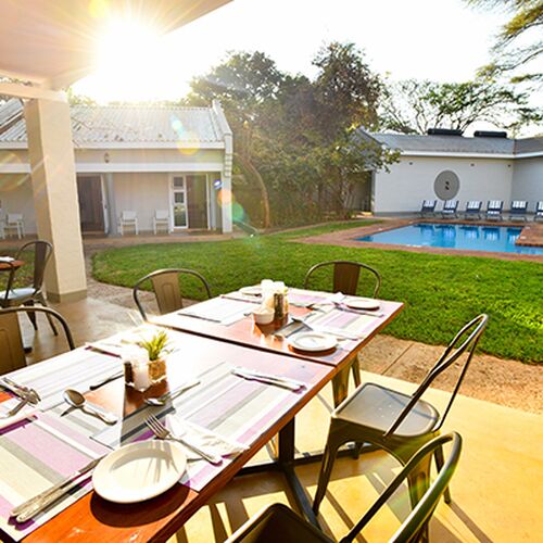 Phezulu Guest Lodge tilbyder et komfortabelt ophold, der er til at betale, i hjertet af Victoria Falls boligområde. Lodgen er søsterlodge til Bayete Guest Lodge og er beliggende 3 kilometer fra Victoria Falls Town og 22 kilometer fra Victoria Falls internationale lufthavn. Phezulu Guest Lodge er en familiedrevet lodge, der tilbyder 21 værelser, der er beliggende ved lodgens tropiske have. Lodgen er for nyligt renoveret, og værelserne er romantisk indrettet i tro mod den afrikanske stil. Centralt placeret i lodgen findes en fin swimming pool. Der er mulighed for at spise inde eller udenfor på den dejlige terrasse med udsigt over poolen.