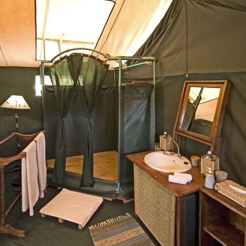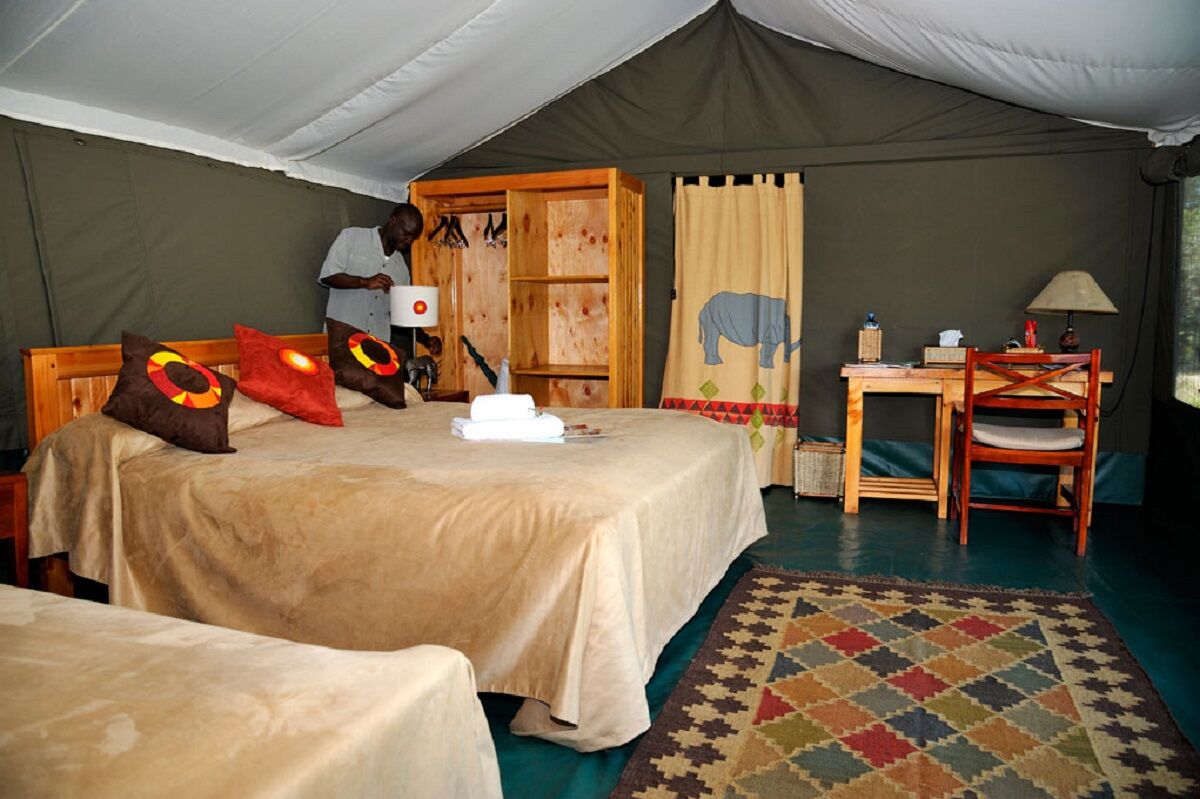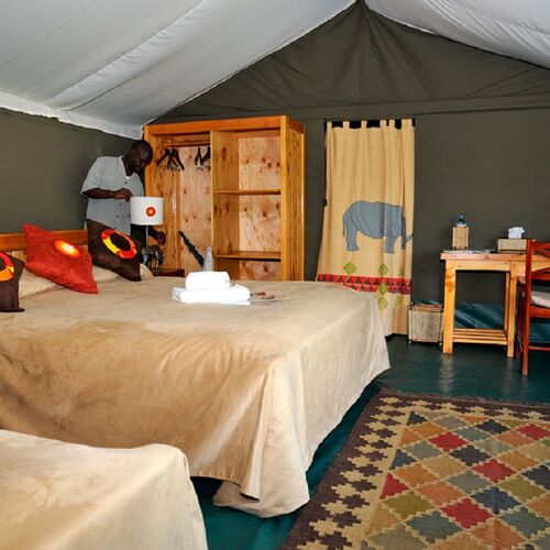 Porini Rhino Camp består kun af 7 rummelige luksuriøse telte. Hvert telt er smagfuldt indrettet og har eget ensuite badeværelse. Campen er designet til at have mindst mulig indvirkning på naturen.