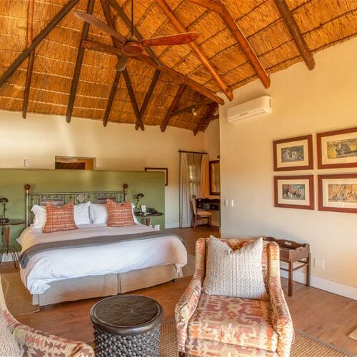 Disse overlegne chalets er rummelige, individuelt indrettede og inkluderer et opholdsområde adskilt fra soveværelset med en rummelig indbygget daybed, ideel til at krybe op med en god bog, mens man lytter til lydene fra Afrika. Der er plads til to personer.