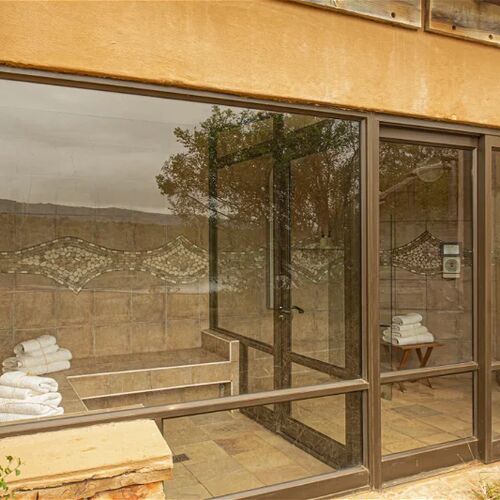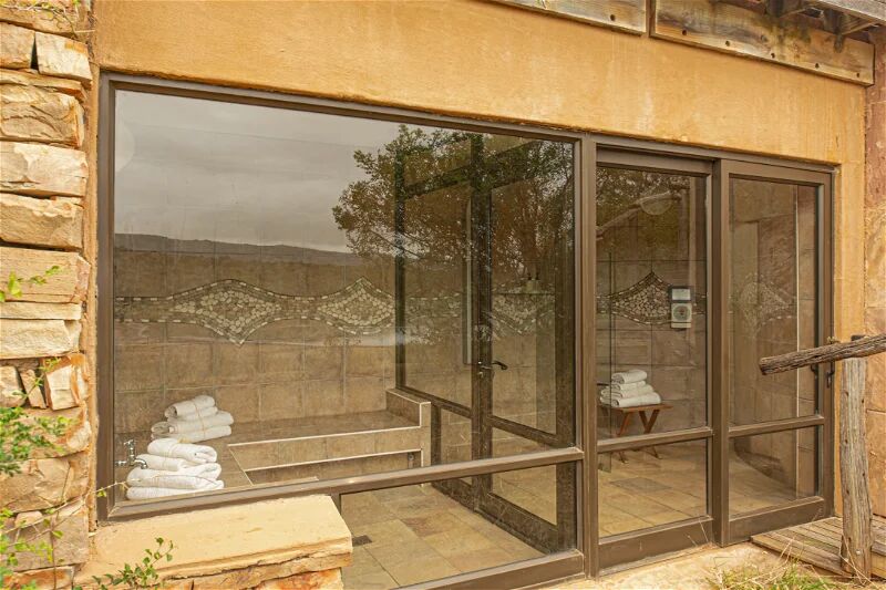 Lodgen har en dejlig solterrasse og pool som kan benyttes efter en lang dag med mange indtryk fra savannen.