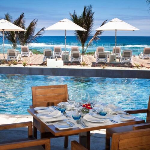 Udover strandoplevelsen kan gæster slappe af med spa-behandlinger eller tage en forfriskende dukkert i den overdådige swimmingpool.