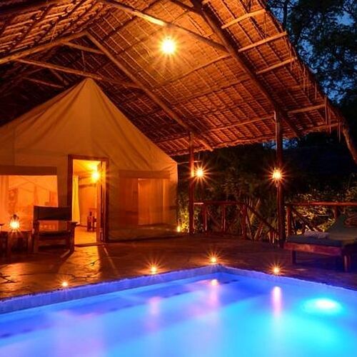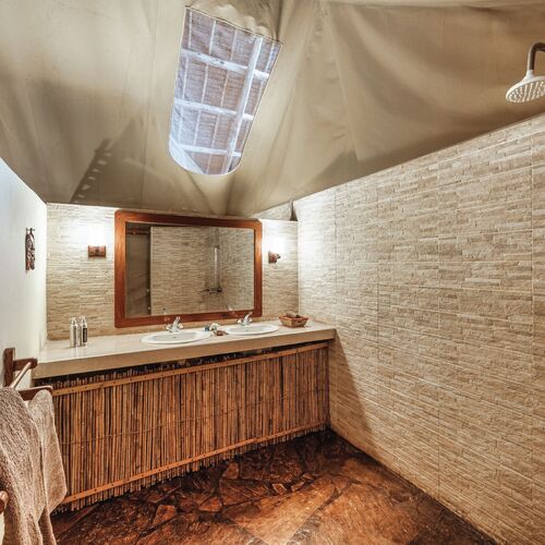 Vælg mellem elegante Standardtelte med veranda og udsigt til flod eller bush, eller forkæl dig selv med et Deluxetelt – komplet med egen plunge-pool på verandaen. Begge kategorier tilbyder privat badeværelse med håndvask, varm og kold bruser samt toilet, komfortabel indretning og en rolig beliggenhed.