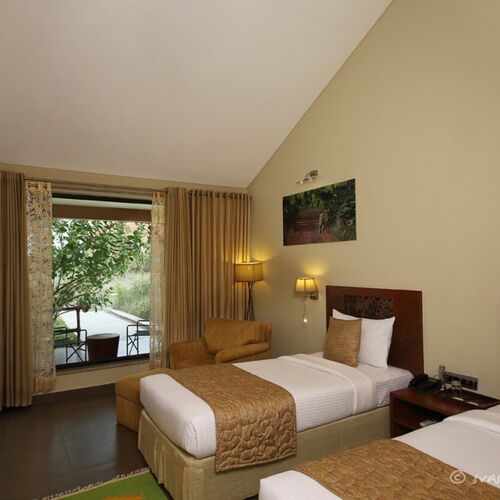 The Svasara Jungle Lodge offers 12 luxurious rooms, all well furnished and equipped with modern facilities. All rooms offer air-conditioning, LCD TV, a mini refrigerator, veranda and well equipped bathroom.