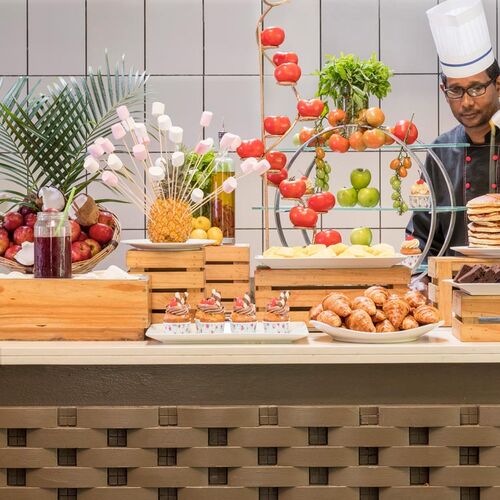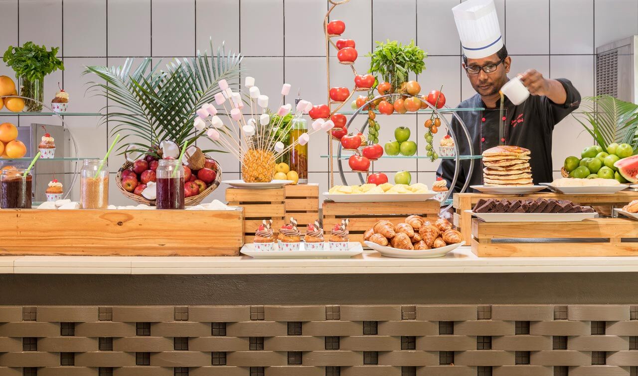 Hovedrestauranten, Show, byder gæster velkommen til overdådig morgenbuffet og sjove teatralske middage.
