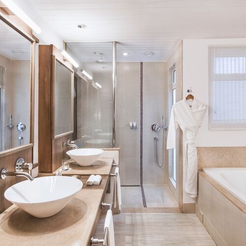 Alle værelser er 43m2 og kan imødekomme 2+1 personer med undtagelse af familieværelserne som er 59m2 og som kan imødekomme 2+3 personer.