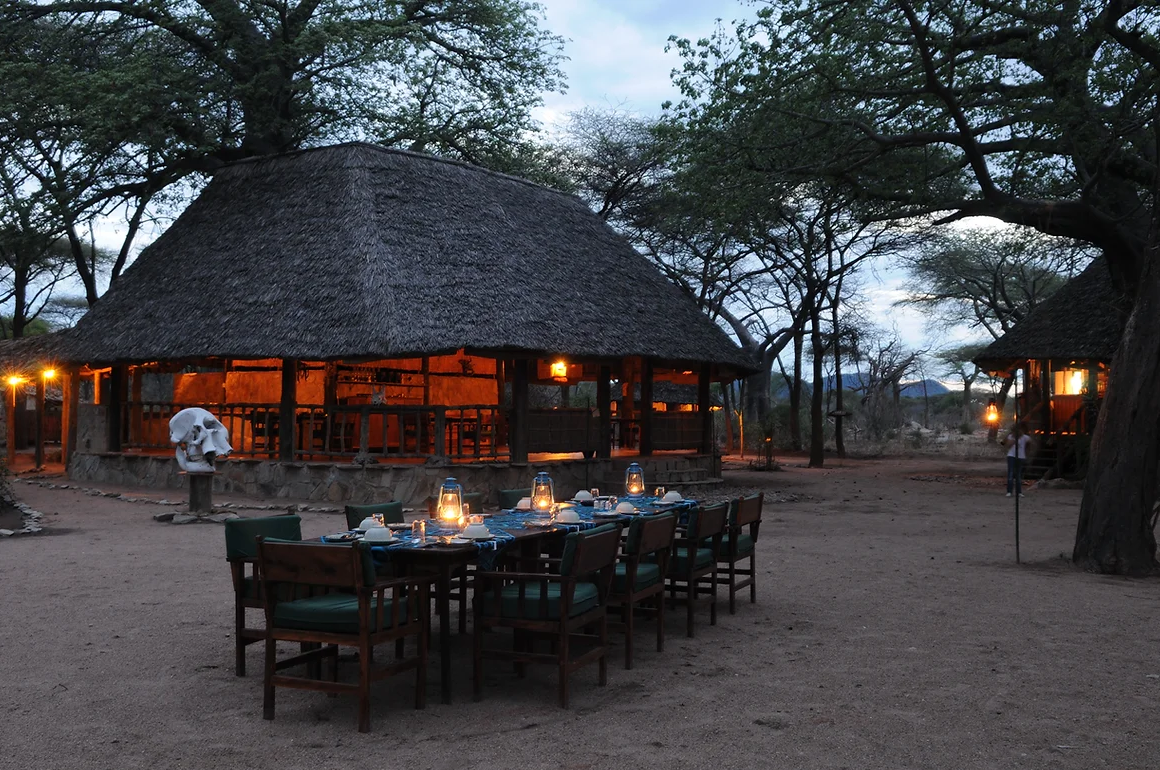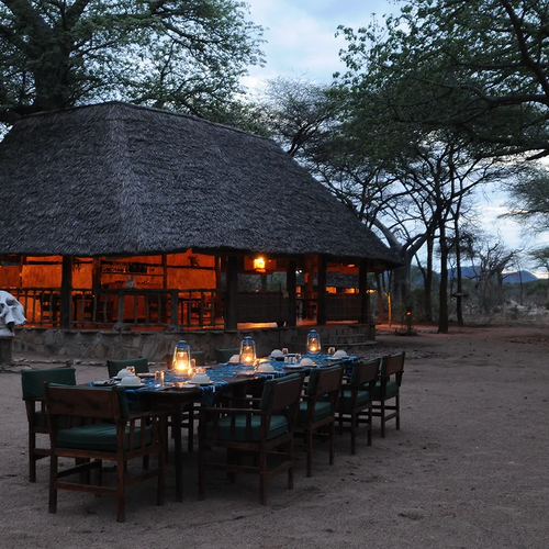 Nyd en overdådig morgenmad med pølser, bacon, æg efter eget valg, frisk mælk, frugtsaft, hjemmebagt brød, syltetøj eller honning, eksotisk frugtsalat og tanzaniansk kaffe eller te. Den to-retters frokost kan serveres i spisestuen eller som en picnic under en safari. En tre-retters middag ved stearinlys serveres normalt under stjernerne i gården ved lejrbålet. Måltiderne er omhyggeligt tilberedt af kokken, og der er ry for lækker hjemmelavet middelhavskøkken, suppleret med et udvalg af vine.