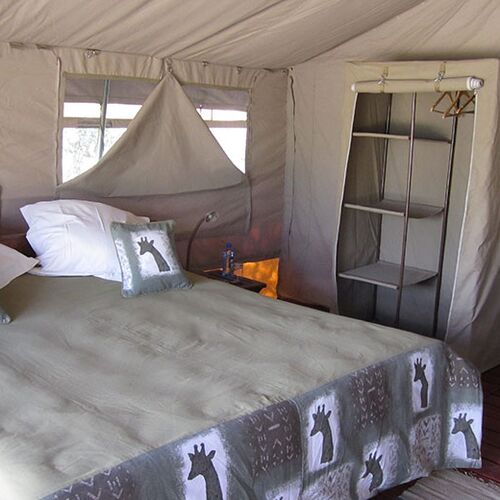 Teltcampen er på private eksklusive campingpladser midt i den afrikanske natur. Camp personalet rejser i forvejen med udstyr og proviant, således at campen er klar når I ankommer. Teltene er slået op, maden er klar og vandet er varmt til et bad.