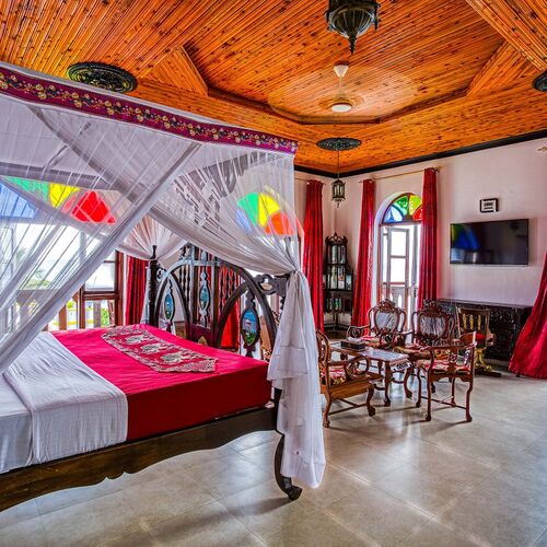 Hotellet har udsigt til byens strand. Indkvarteringen sker i kategorierne rooms, suites og Freddie Mercury Apartments. De fleste værelser ligger med udsigt fra balkon, som vender mod strand eller mod pool i atriumgård. Hotellet er udstyret med antikke møbler og genstande med værelser i swahilistil.