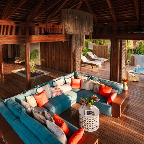 Værelserne er som sagt spredt ud i landskabet i form af suiter, bungalows og villaer. Villaerne med 2 værelser kan både fås med direkte nedgang til stranden og havet eller med udsigt til den spektakulære have. Uanset hvad så er der badeværelse til hvert værelse, stor terrasse med jacuzzi og en rundtur i deres krydderihave eller ”wellbeing” session pr. dag. Disse wellbeing sessions inkludere blandt andet en facial i jacuzzien, en yoga time eller træning i enten de indvendige eller udvendige fitnessfaciliteter.