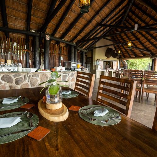 Umkumbe tilbyder udendørs traditionel safari-stil spisning, hvor gæsterne spiser sammen i den åbne boma. Bordene er centreret omkring et bål, som ofte er samlingspunktet for aktiviteter efter aftensmaden. Guiderne kommer ofte og sætter sig sammen med gæsterne for at besvare spørgsmål om dagens safari.Aftensmad serveres på et fast tidspunkt efter den aftenlige game drive, og der er altid et udvalg af velsmagende retter tilgængelige i buffet-stil.