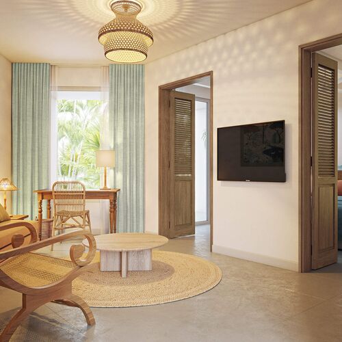 Disse moderne og chic værelser er placeret foran en frodig tropisk have. De har plads til 2 voksne og enten 1 barn eller 1 teenager samt 1 baby. Som med de andre kategorier kan børn eller teenagere have deres eget rum.
