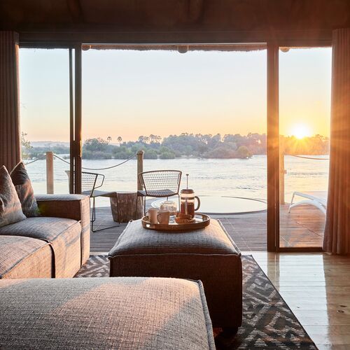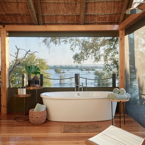 Victoria Falls River Lodge ligger opstrøms fra de ikoniske Victoria Falls, midt i frodige vildtvoksende buske på Zimbabwe-siden af den mægtige Zambezi-flod. Lodgen blev etableret i 2012 som den første private safari lodge i Zambezi National Park, og ligger yndefuldt på bredden af den utæmmede Zambezi-flod.
