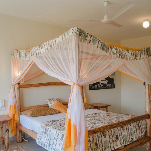 Lodgens værelser er indrettet med afrikansk inspiration og har rummelige en-suite badeværelser. Luksuriøse værelser med dobbelte himmelsenge giver en betagende udsigt over landskabet, som kan nydes fra private balkoner eller terrasser. Voi Wildlife Lodge tilbyder også moderne konferencefaciliteter, hvilket gør det til et ideelt valg for møder og private events.