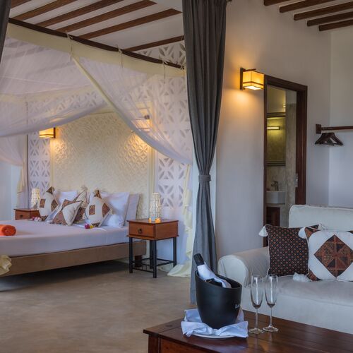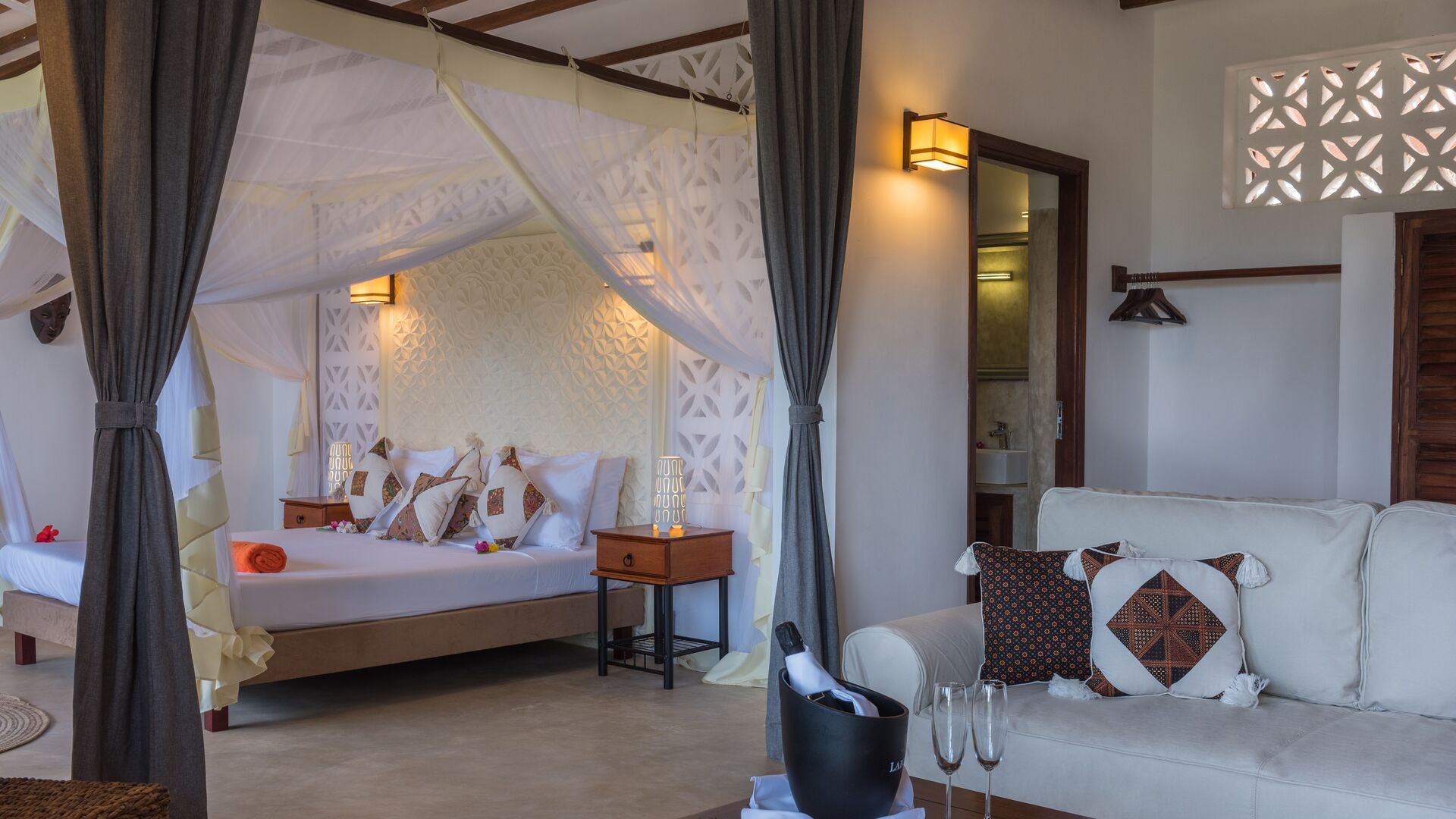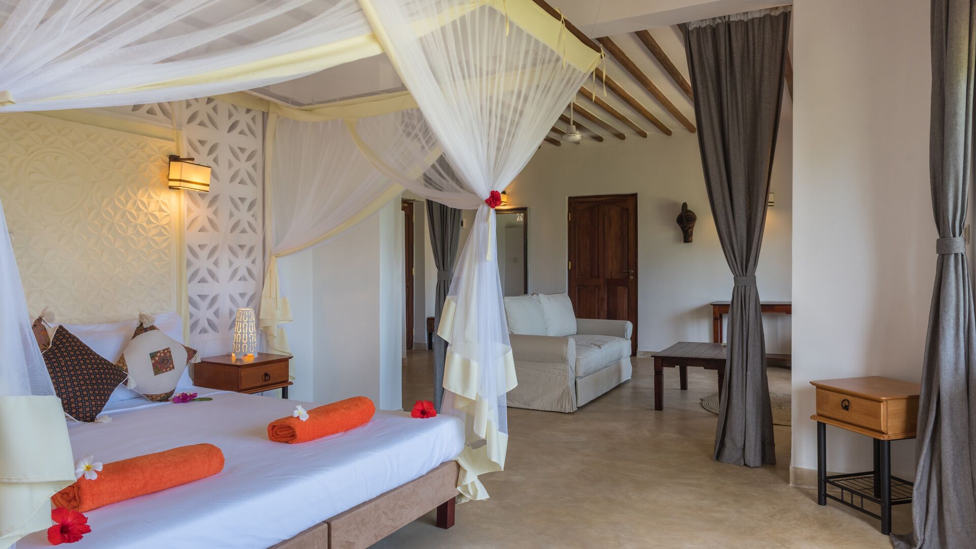 Udover værelserne har Zanzibar Magic Boutique Hotel også 2 bungalows med plads til op til 4 personer. De ligger forskudt med den ene blot 15 meter fra strandkanten.