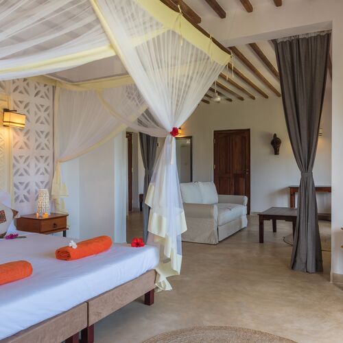 Hotellet er miljøvenligt og derfor er der ikke aircondition på værelserne, men der er altid en let tropisk brise ved Zanzibars kyst og derfor er aircondition ikke nødvendig. Luk døren op og lad brisen og lyden af havet komme helt ind på værelset.