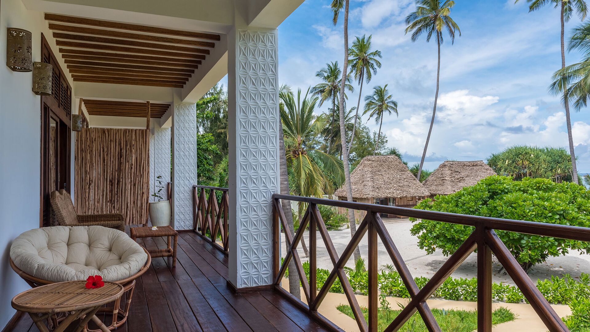 Alle værelser på dette skønne hotel har egen terrasse med udsigt til flotte palmer og havudsigt til det turkisblå Indiske Ocean.
