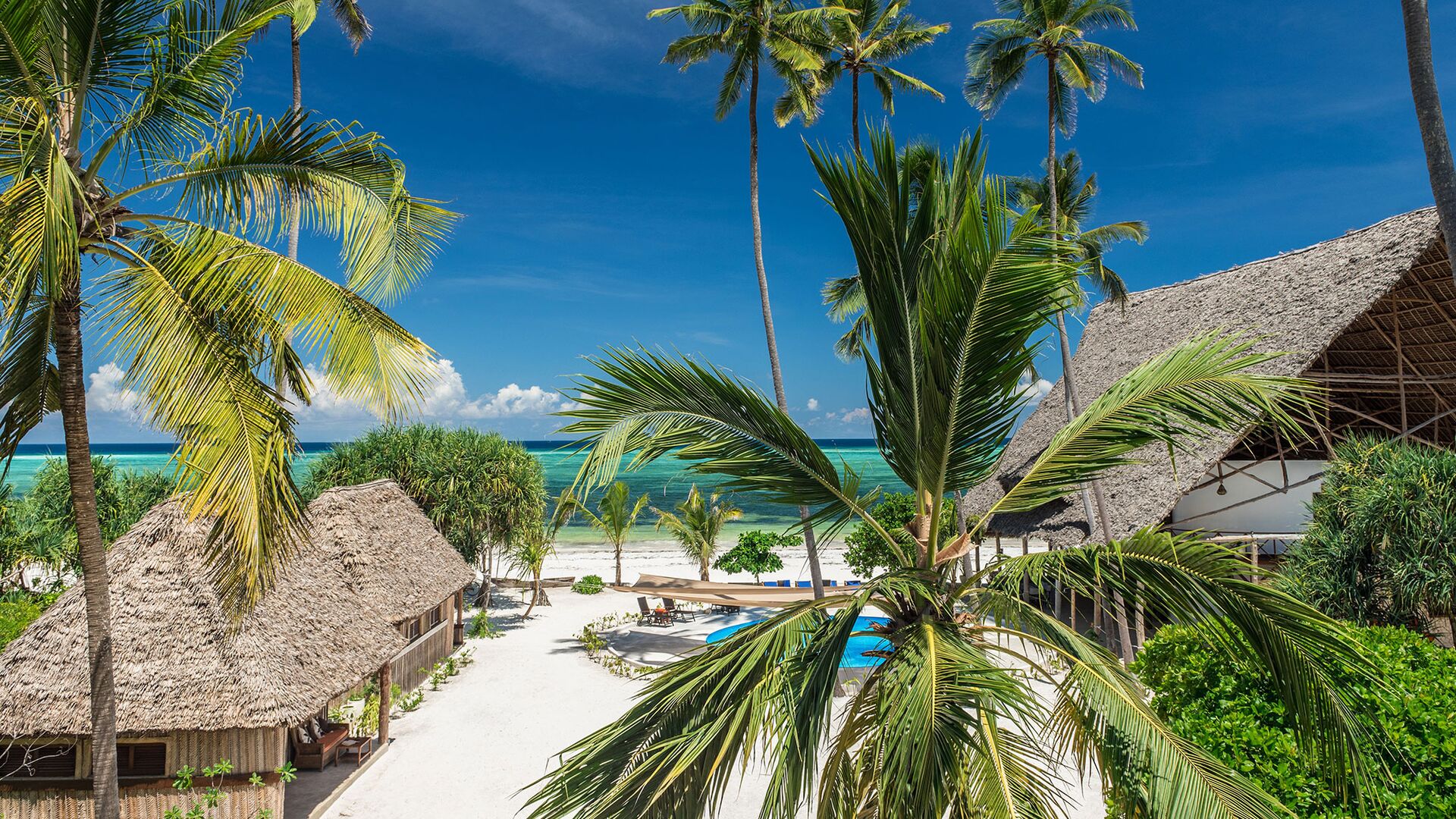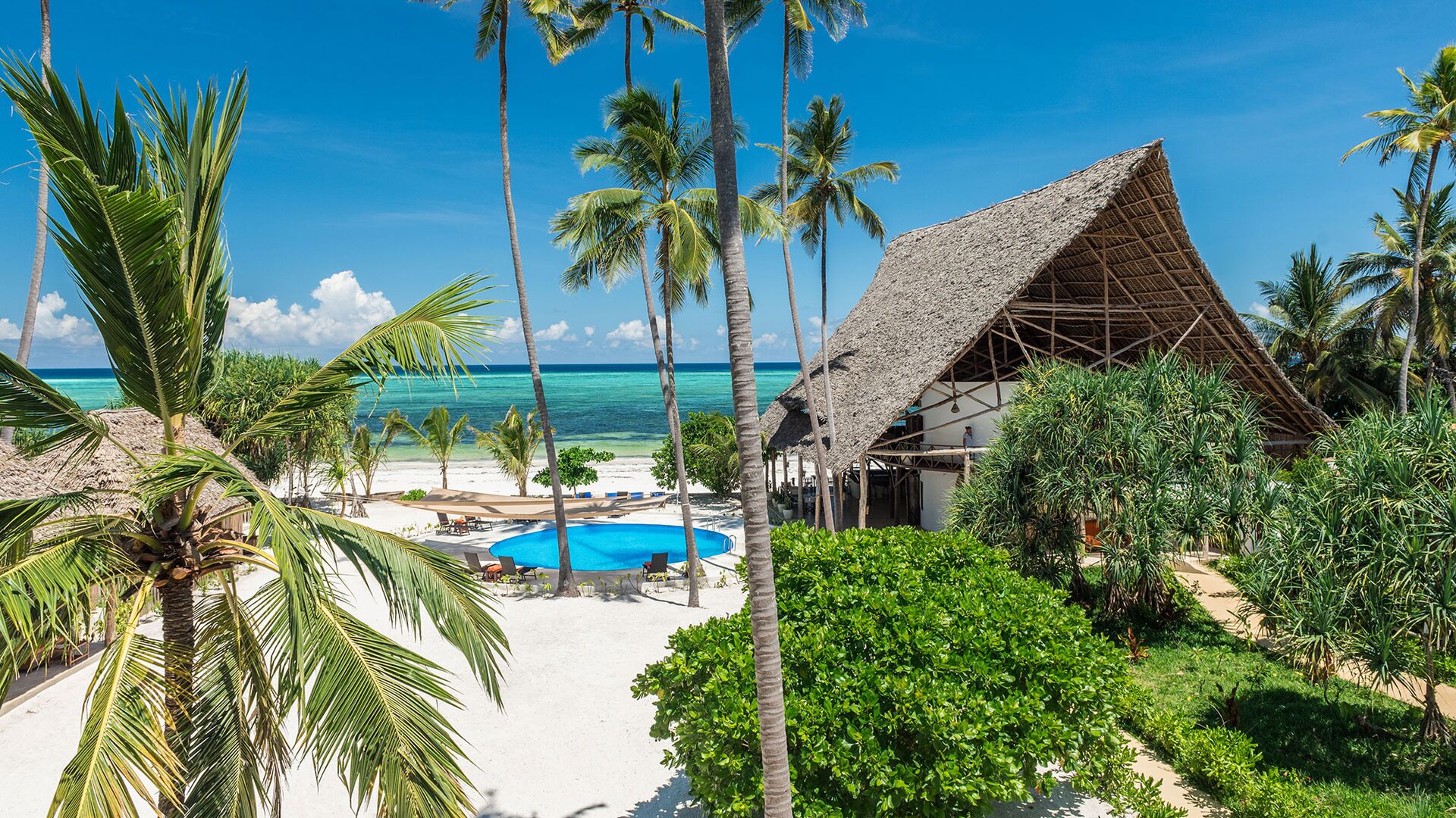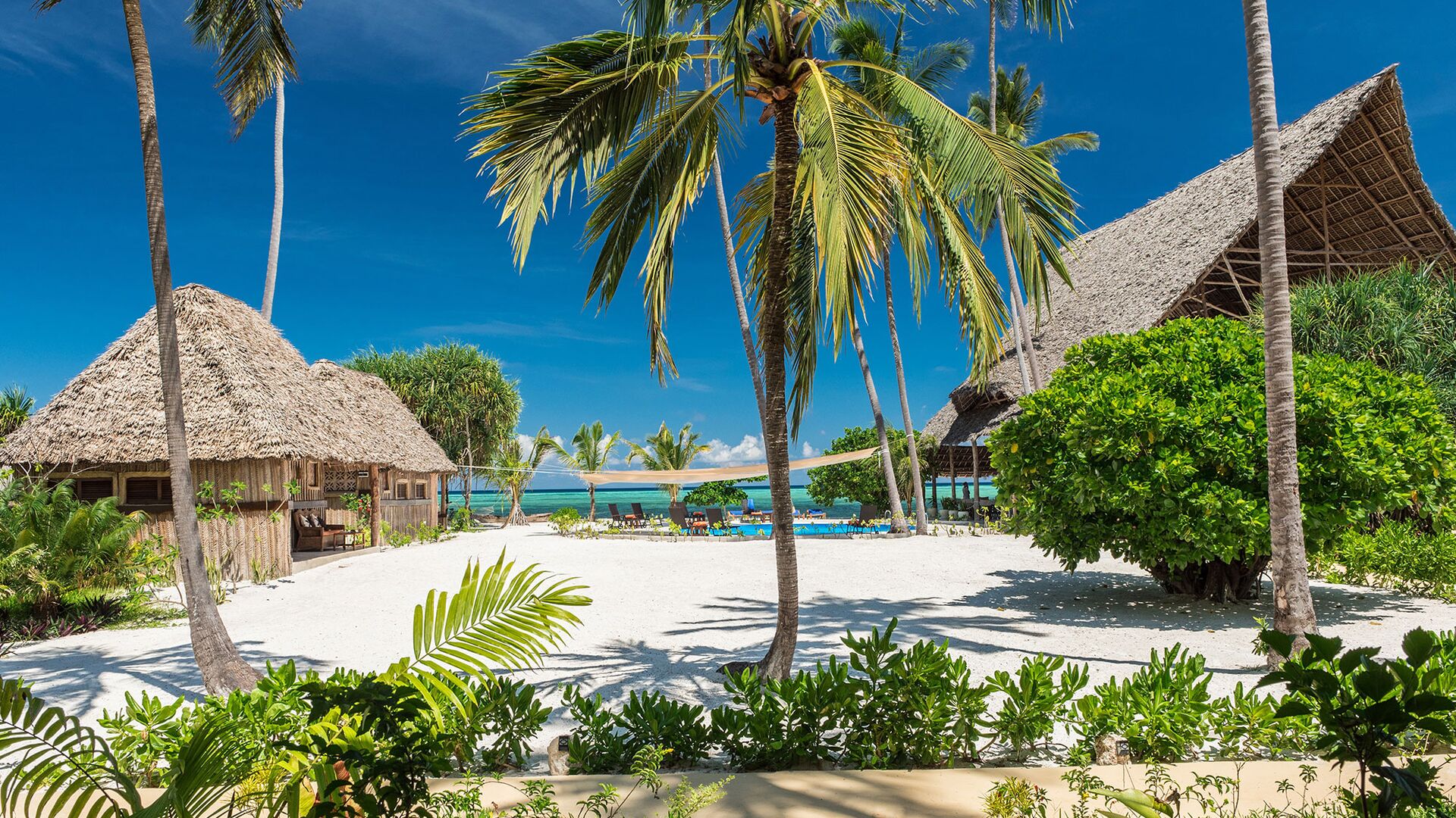 Beliggende ved hvid sandstrand i Matemwe Village på Zanzibars nordøst kyst.